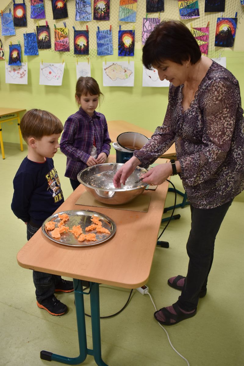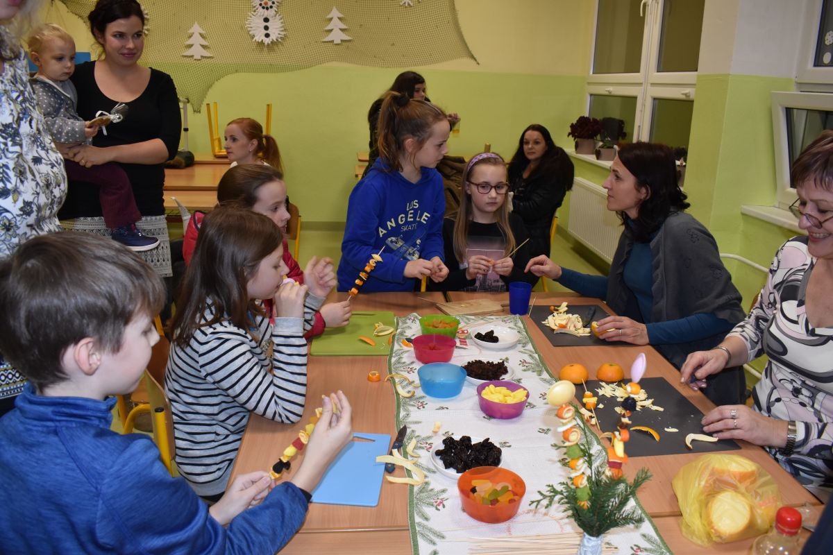 V dílničkách se opět vánočně tvořilo, vyráběly se různé výrobky - např. andělíčci, ořechové lodičky, zápichy z pomerančové kůry a sladkostí, odlévalo se z vosku a věštila budoucnost.