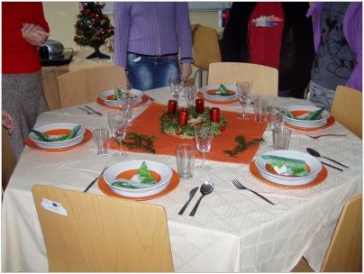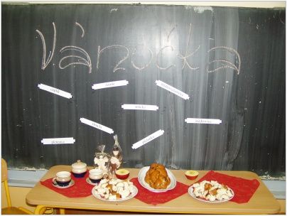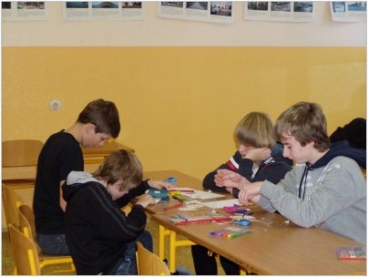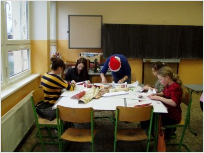 výroba dárkových krabiček a tašek, pletení vánočky, vánoční zvyky a tradice, výroba vánočních jmenovek, slavnostní tabule stolu, vánoční kvíz, vánoční písně a přikrmování ptáků v zimě. Po splnění všech dílen se žáci odebrali do svých tříd na besídku.