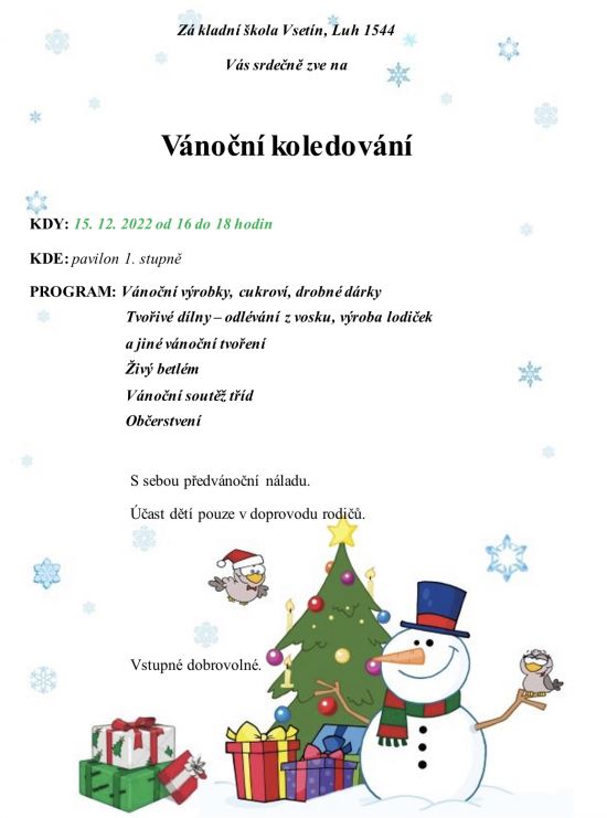 Vánoční koledování na naší škole