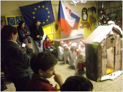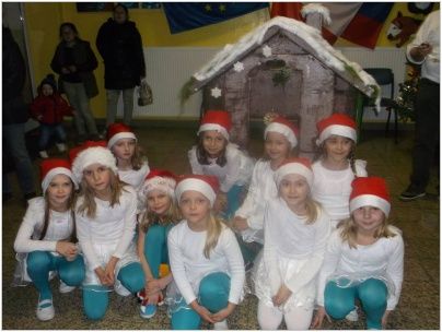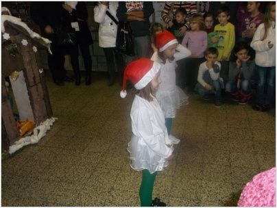Děti z folklórního souboru malý Luháček s paní učitelkou převedly krásné vánoční pásmo „Živý Betlém“.