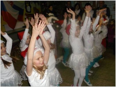 Ve školním vestibulu pak měli všichni možnost shlédnout další vystoupení v podání dětí 1. - 2. tříd z kroužku aerobiku Mini - Broučci. Veselý vánoční taneček “Vánoce,Vánoce přicházejí“ děti zatančily s velkým elánem a nadšením a někteří z nich měli i svou první malou taneční premiéru. Potlesk a úsměv na tvářích přítomných byl pro děti a jejich paní učitelku krásným dárkem k Vánocům.