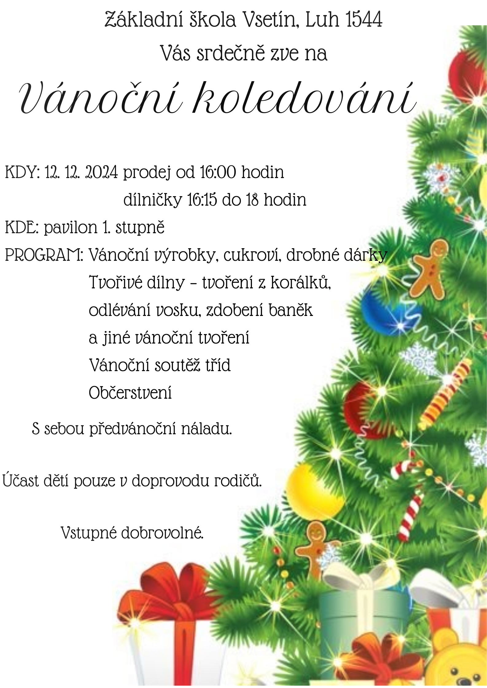 Rok se s rokem sešel a VÁNOČNÍ KOLEDOVÁNÍ je opět před námi. Srdečně vás zveme dne 12.12.2024 od 16:00.