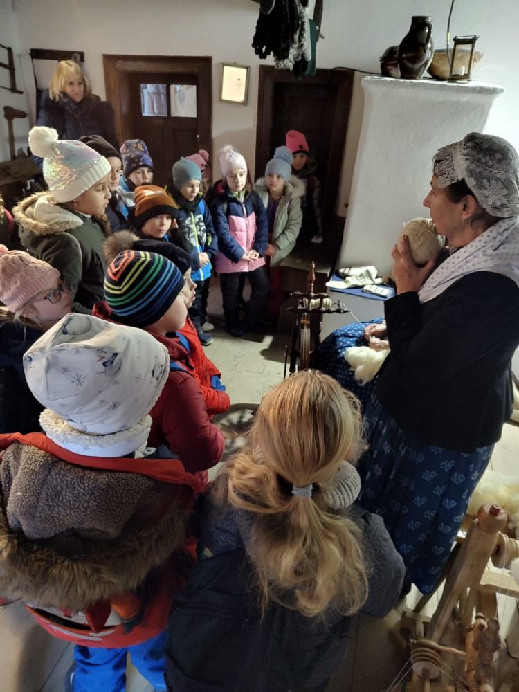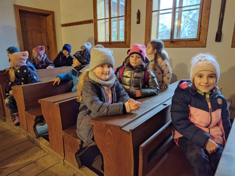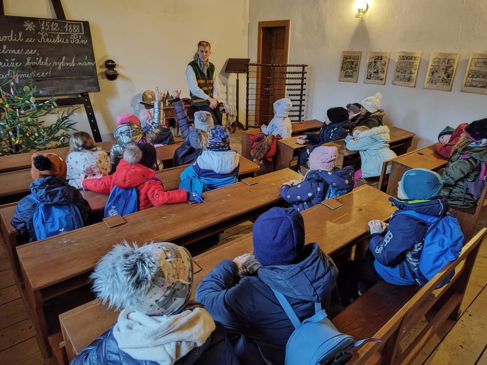Příjemnou zastávkou bylo posezení v lavicích venkovské školy, kde pan učitel vyzkoušel děti z počtů a za doprovodu housliček jsme si všichni zazpívali koledy.