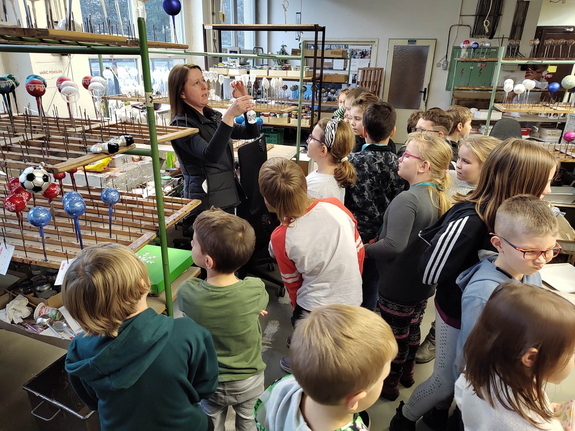 Děti ze školní družiny navštívily v rámci exkurze firmu Irisa, kde měly možnost nahlédnout do tajů výroby skleněných vánočních ozdob. Paní nás provedla foukárnou, kde vznikají ručně foukané baňky a skončili jsme návštěvou u malířek, které tyto vánoční baňky zdobí barvami či třpytkami. Nakonec si děti zakoupily vánoční ozdoby, které si nyní mohou zavěsit na vánoční stromeček.
