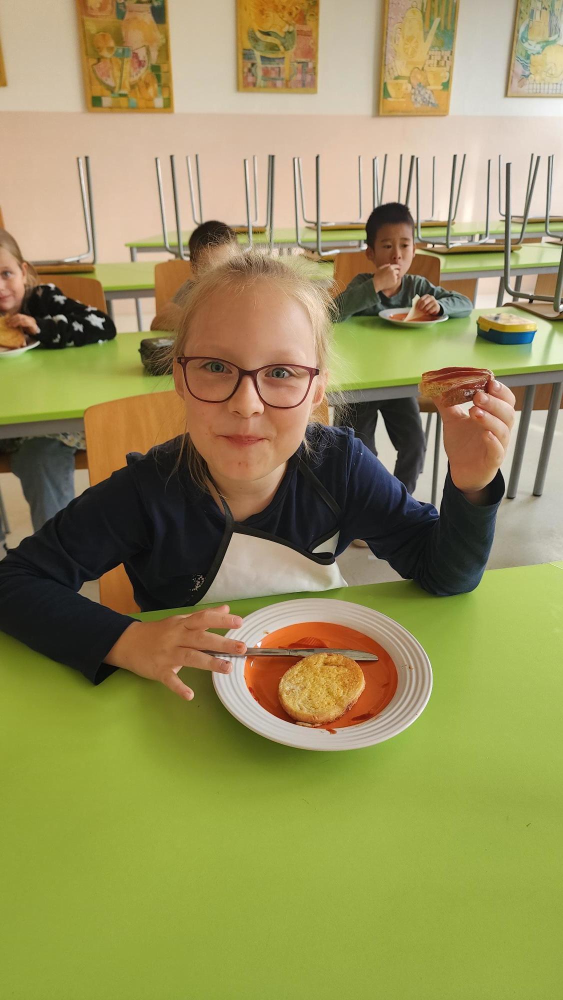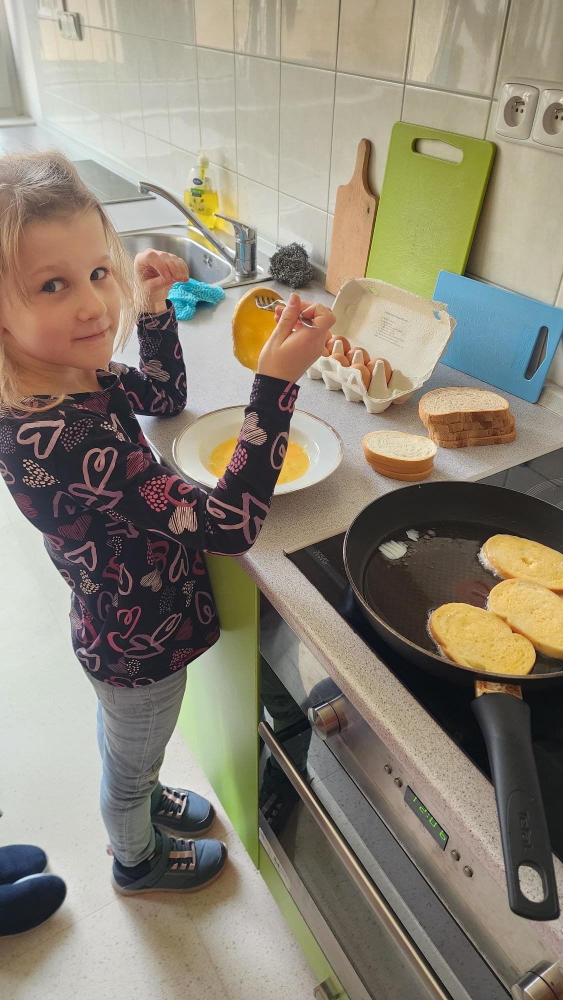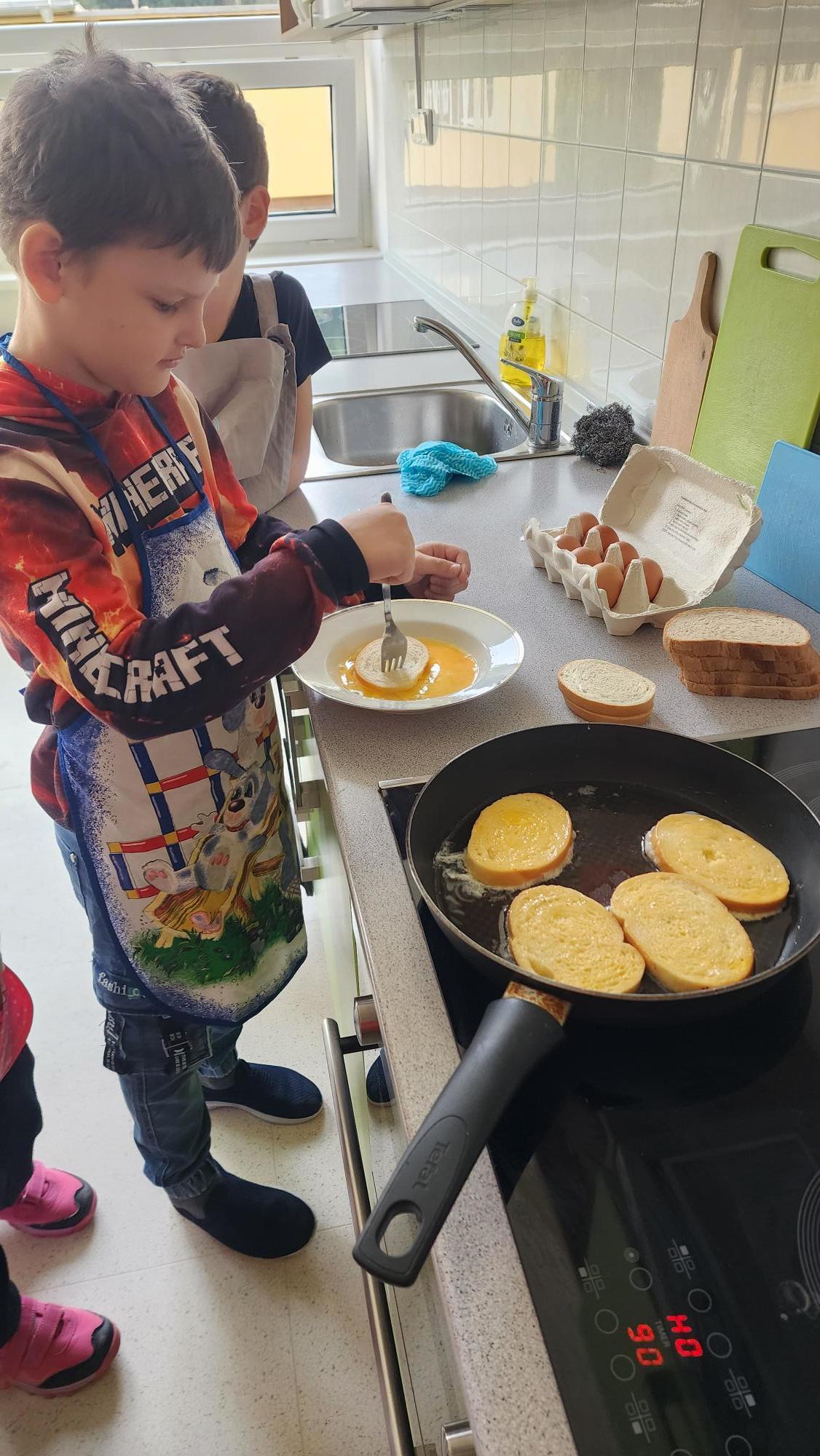 V úterý 21.10.2025 jsme s velkou vášní a nadšením rozklepli vajíčko a obalili vlastnoručně chleba.  Byla to taková lahůdka, že nám skoro nezbylo ani domů na ochutnávku. Své recepty evidujeme ve vlastním receptáři a těšíme se na další kuchařské dílo.