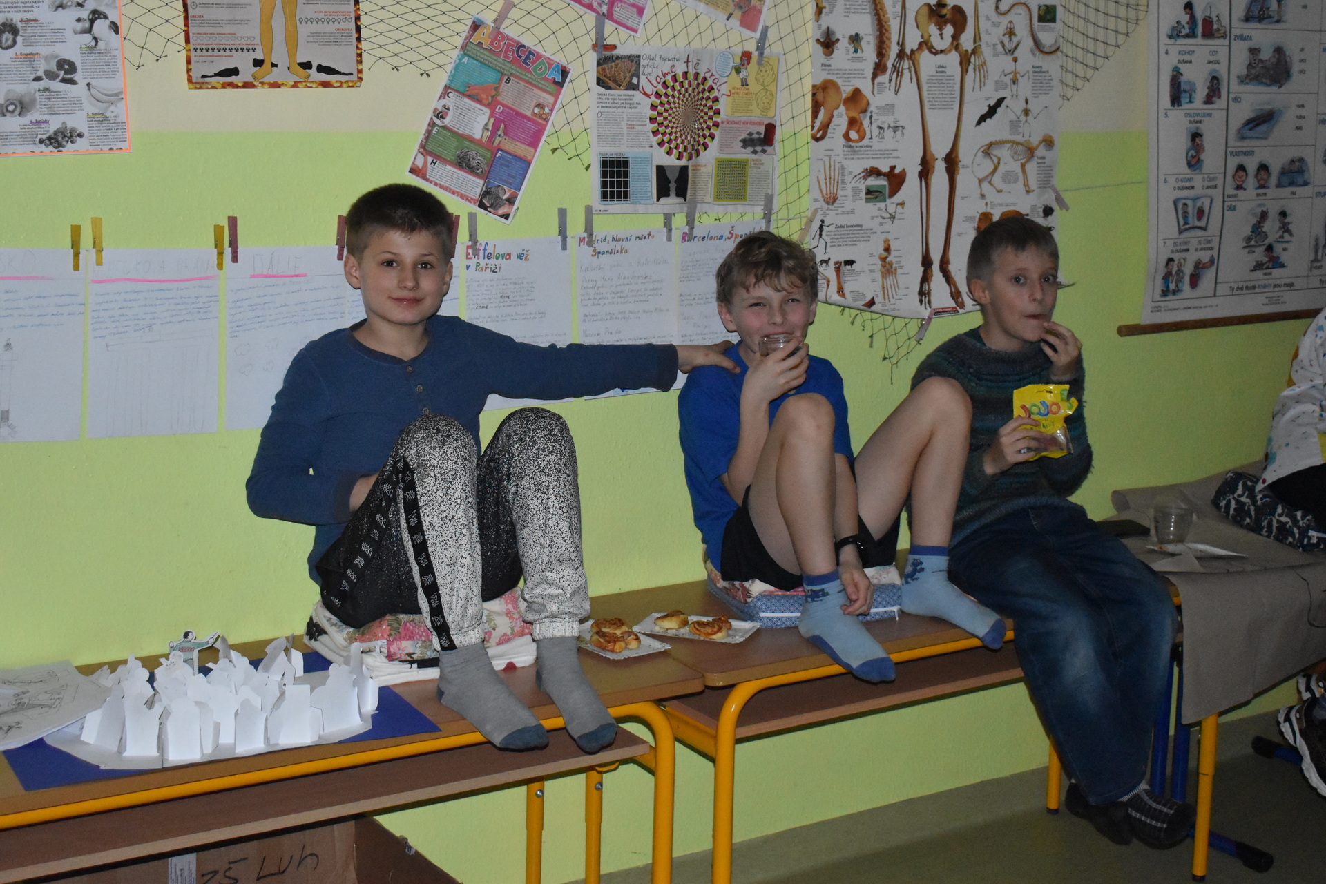 Večer se školním klubem byl plný zábavy, sportovních aktivit a skvělého jídla. Děti se sešly, aby si užily příjemný čas s kamarády a zúčastnily se různých aktivit, které si pro ně připravil pan vychovatel Tomáš Chrudina. Společně začali sportovními aktivitami, kterými rozproudili jejich energii a přátelskou atmosféru. Pokračovali pečením pizza šneků, což byla skvělá příležitost ukázat své kuchařské dovednosti a na závěr večera bylo promítání filmu. Celý večer byl plný smíchu a radosti. Děti si užily skvělý čas plný zážitků.