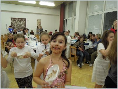 Poslední třešinkou na dortu bylo vyhlášení nejkrásnější masky večera. Rozhodování bylo velmi těžké. Nakonec zvítězila maska paní doktorky, nezbedný čertík a půvabná gejša. Program pro děti byl tedy u konce, ale nikdo nemusel zoufat, pokračovali jsme dál – večírkem pro rodiče a přátele školy. K tanci a poslechu po zbytek večera hrála kapela Old Boys. Jsme rádi, že se celá akce vydařila a večer byl naplněn dobrou náladou a úsměvy. Děkujeme rodičům za jejich podporu, které si velmi vážíme a těšíme se na další rok.