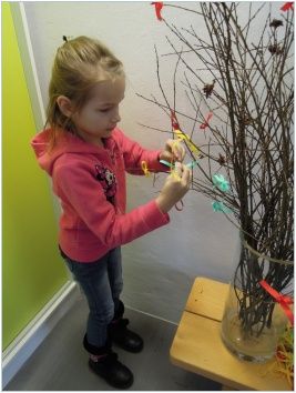 Zúčastnili se velikonoční dílny v nově vybudovaných prostorách. Paní lektorka dětem přiblížila velikonoční zvyky a tradice. Děti se dozvěděly, jak se na Valašsku slavily Velikonoce. Děvčata si společně zatancovala a zazpívala, kluci si „natrénovali“ švihání vrbovým proutkem. Měli možnost pozorovat na starých filmových záznamech tradiční zdobení vajíček na Valašsku. Každý si vyrobil hezké přáníčko. Byly to příjemně strávené chvíle.
