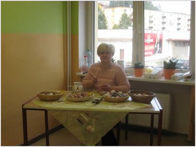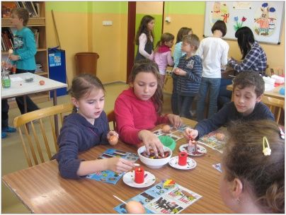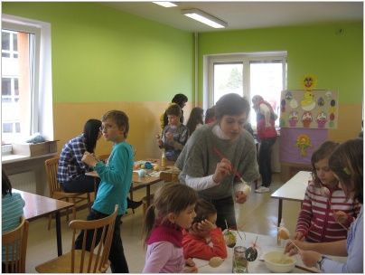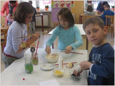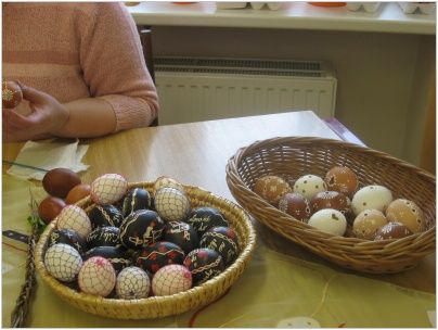 K nahlédnutí byla výroba velikonočních vajíček náročnou technikou v podobě drátovaných, madeirových a valašských kraslic, které zručně předváděla paní učitelka Hořanská. Velikonoční vajíčka všichni přítomní právem obdivovali.
