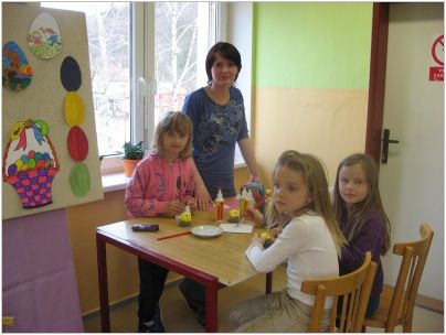 Odpoledne probíhalo v poklidné pracovní atmosféře. Domů si všichni odnášeli pěknou velikonoční výzdobu. Spokojenost rodičů a dětí byla výsledkem úspěšné velikonoční dílny, kterou připravily paní vychovatelky.