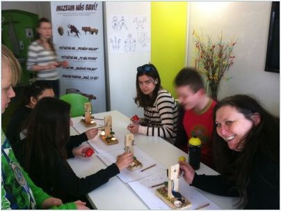 Paní Plátková nám poutavě vyprávěla, jak probíhaly přípravy na Velikonoce v minulosti a taky nám popsala zvyky a tradice, které se udržují dodnes. Zhlédli jsme i výstavu velikonočních kraslic a na závěr jsme si zkusili malovat vajíčko horkým voskem. Program se nám velmi líbil a už se těšíme na další návštěvu na zámku.