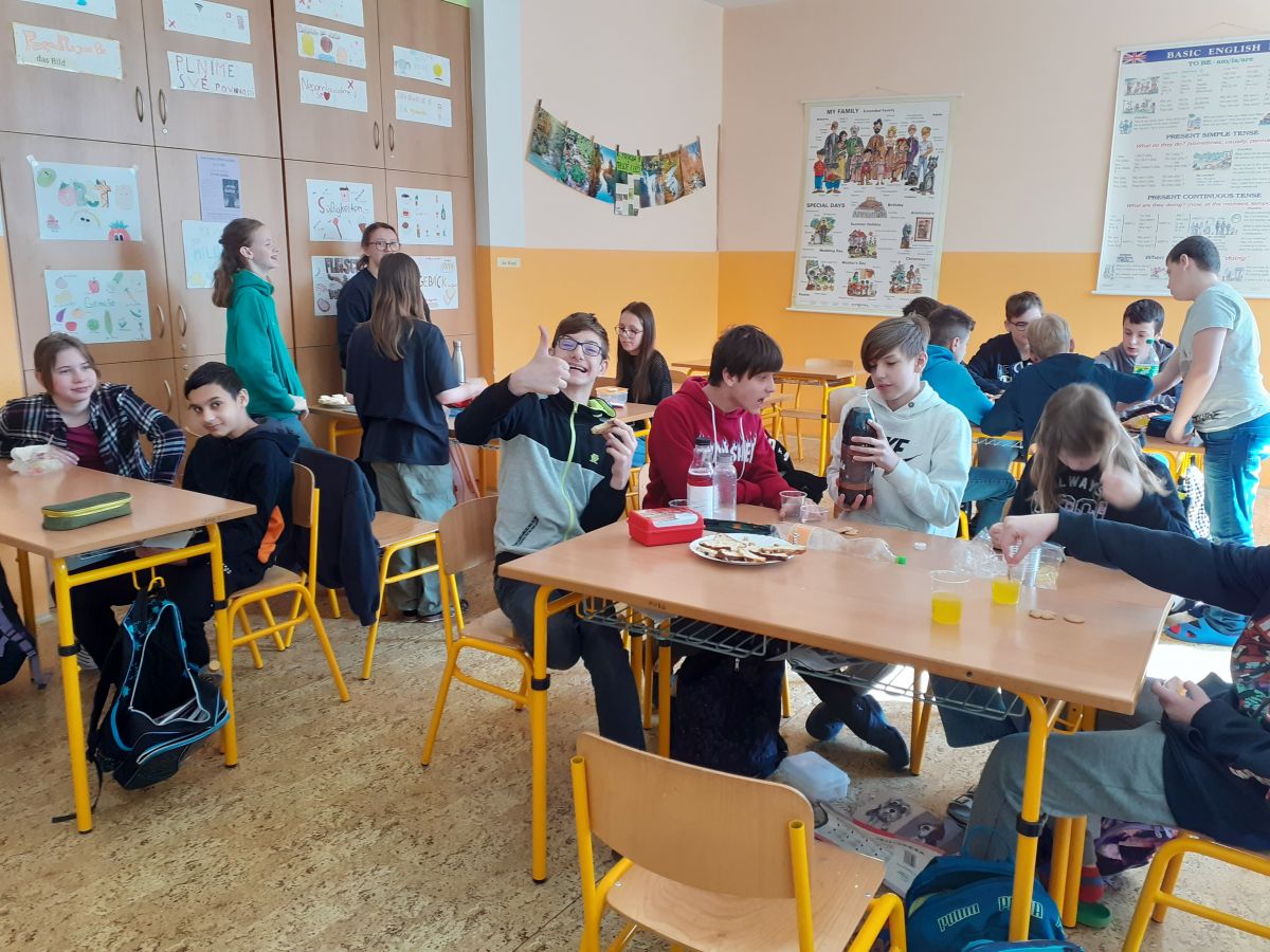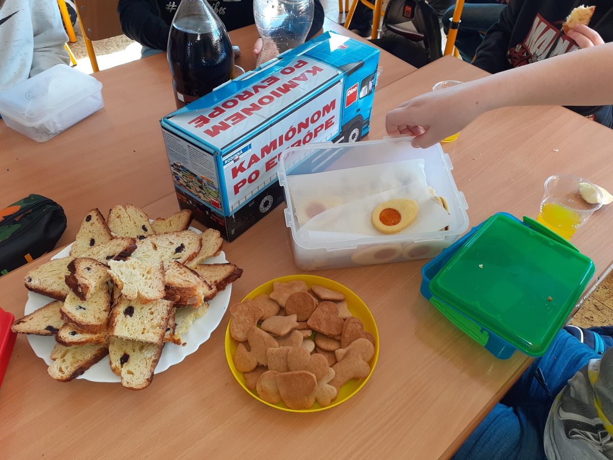 Poslední den před velikonočními prázdninami jsme si v naší třídě trošku „vylepšili“. Popovídali jsme si o tradicích i jen tak mezi sebou, ochutnali jsme mazanec, perníčky, velikonoční linecké cukroví a zdravou rybí pomazánku v podobě „jednohubek“, utužili jsme vztahy ve třídě prostřednictvím společenských her a vyšli jsme vstříc jaru, které už k nám snad konečně dorazí…….Krásné jaro všem. Mgr. Renata Haplová, foto: Mgr. Martina Kovářová