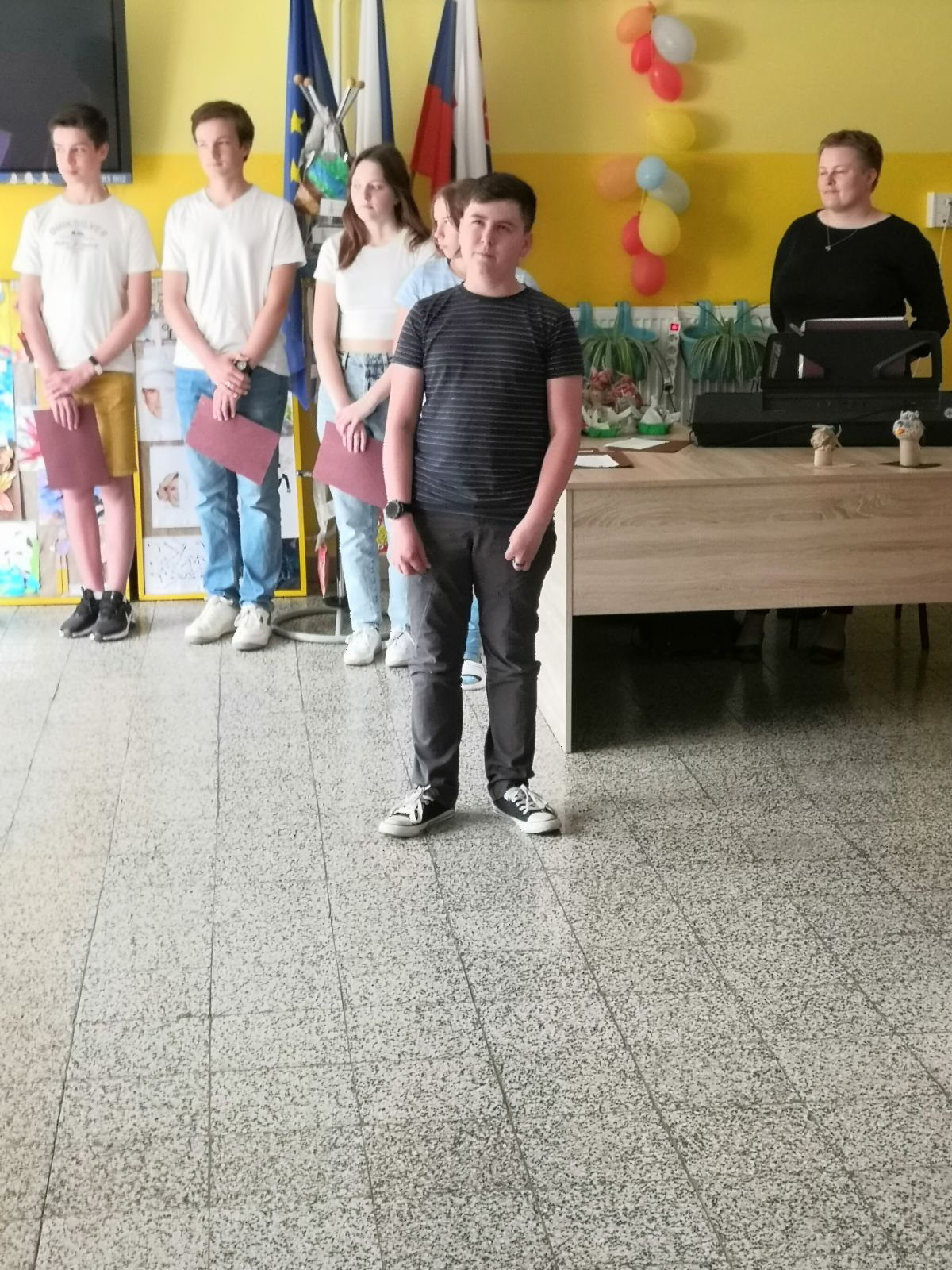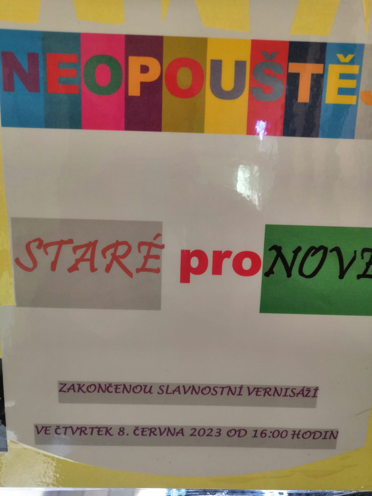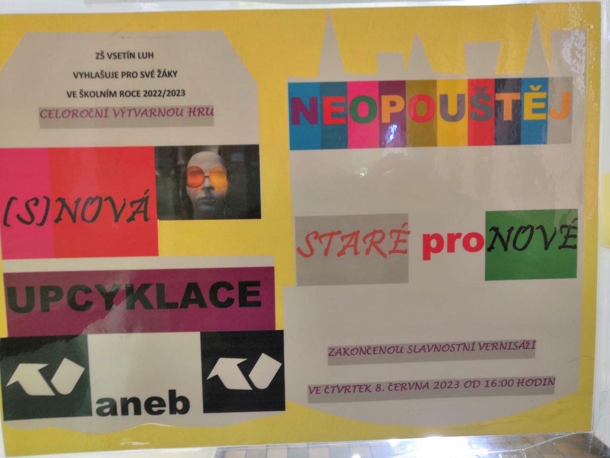 Slavnostní VERNISÁŽ proběhla 8. června ve vestibulu školy. Slova na úvod patřila panu řediteli Petru Kořenkovi. Příjemnou atmosféru navodila píseň NEOPOUŠTĚJ STARÉ ZNÁMÉ PRO NOVÉ, kterou nacvičila paní učitelka Petra Jungwirthová s vybranými žáky, doprovodila zpěv Tomáše Sládečka, Matyase Hudce, Jirky Fialy, Míši Babicové, Terezy Markové a Káji Magnaga hrou na klávesy. Kája Magnago zarecitoval báseň od Soni Pavelkové.