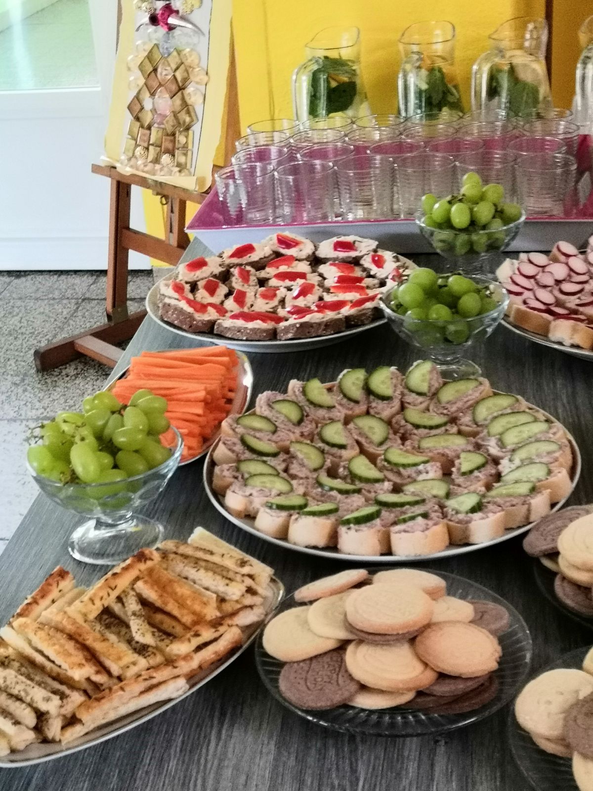 Na vernisáži samozřejmě nechybělo občerstvení, které připravily paní učitelky Jana Gajdošová, Martina Teplá, paní asistentka Laďka Novotná s pomocí Andrey Marančákové a Anny Liakh.