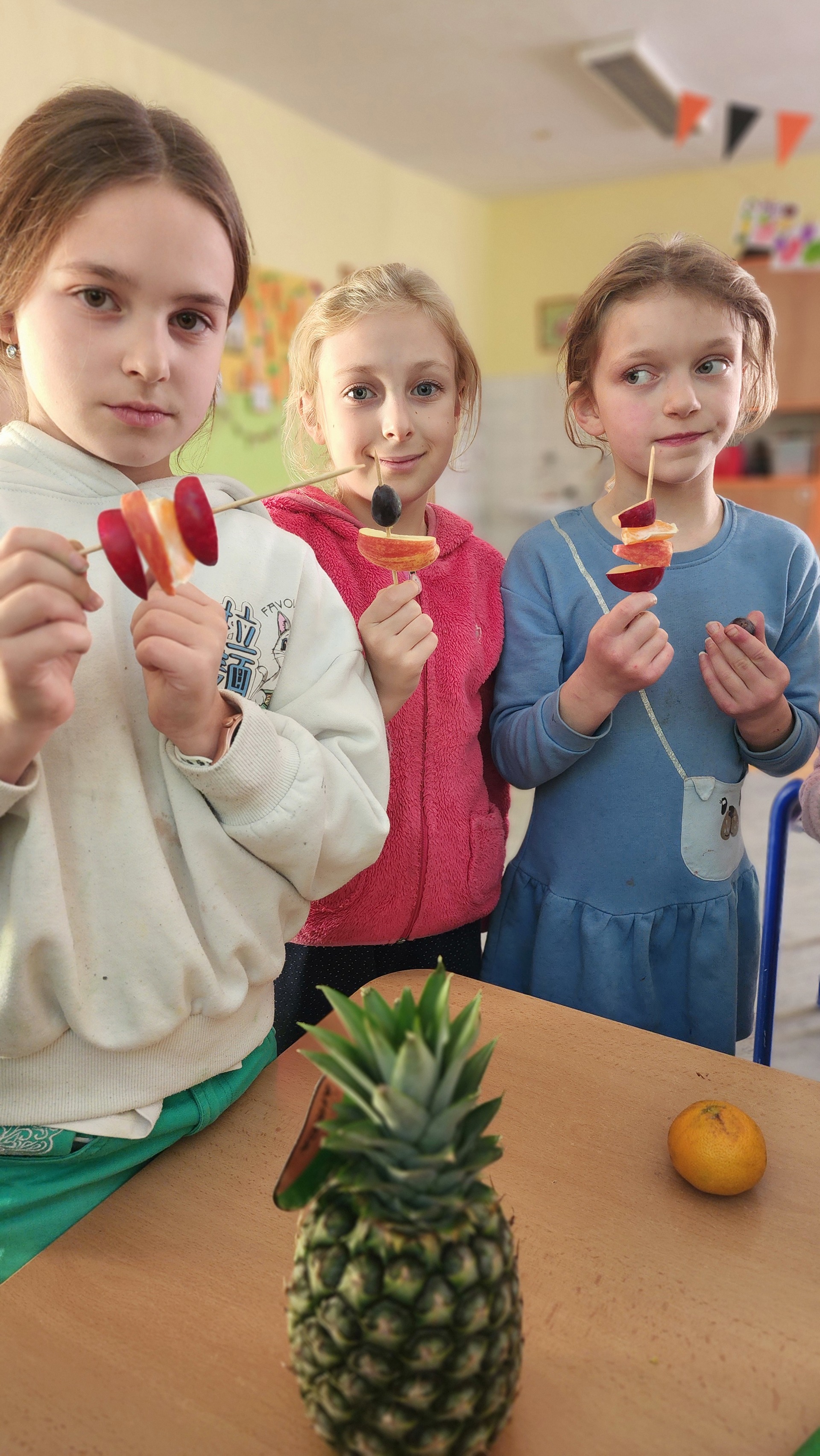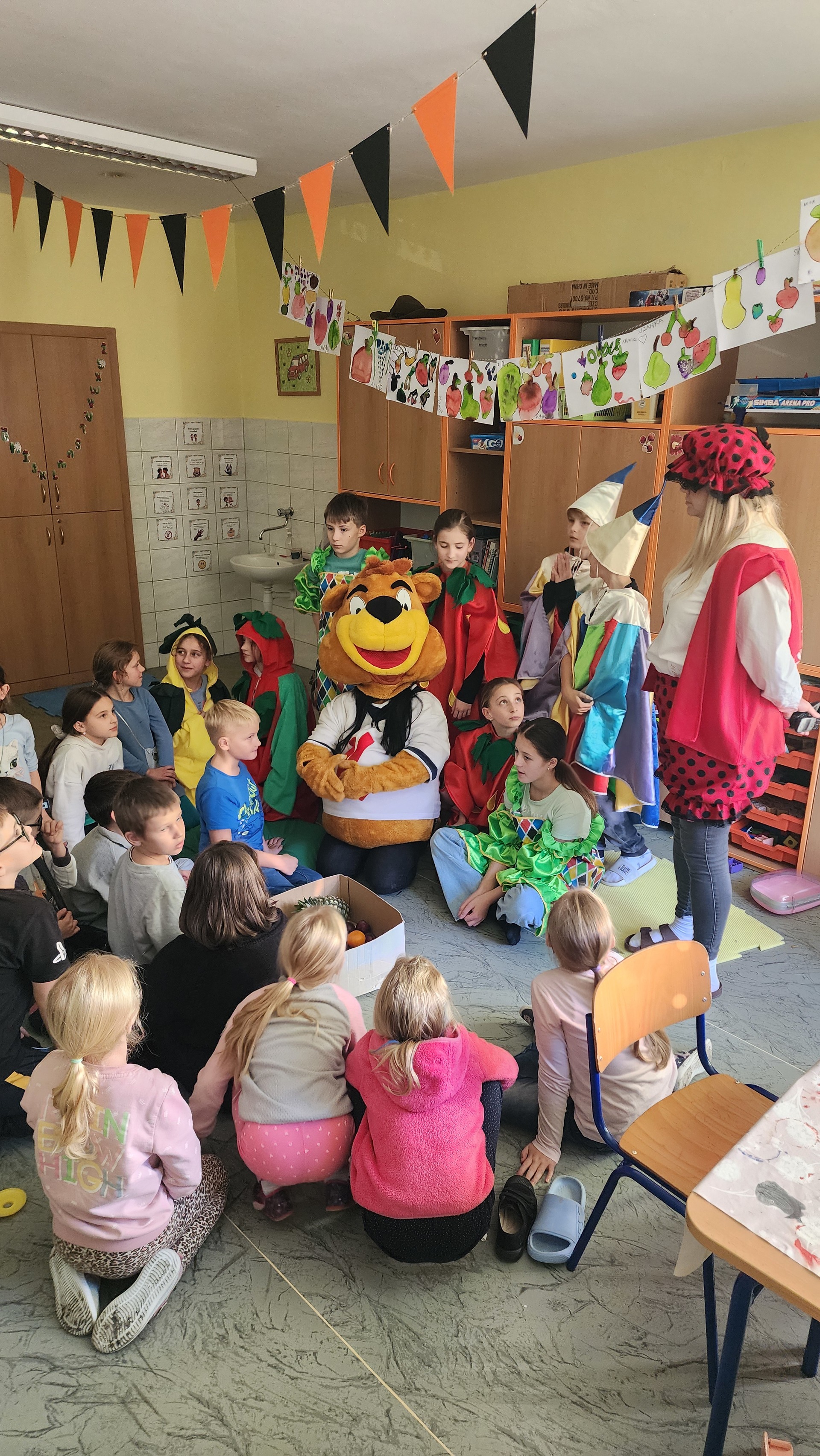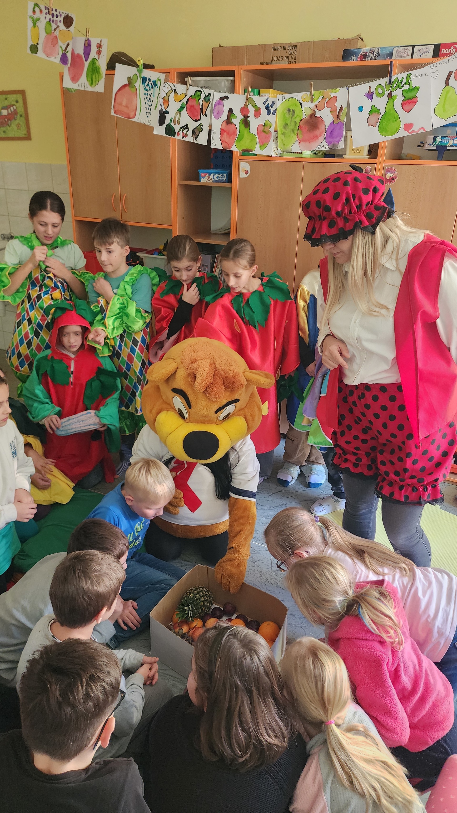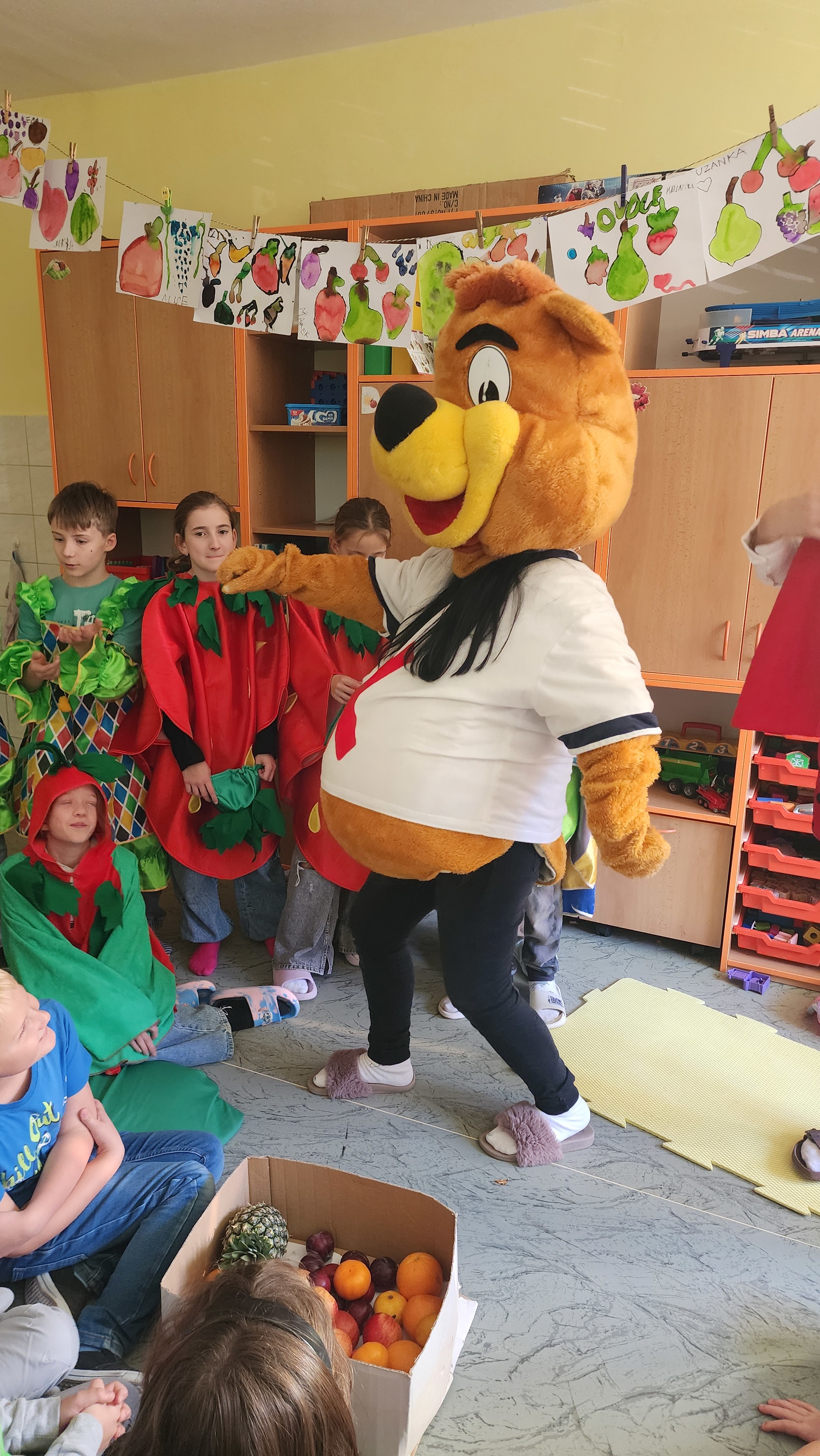 V pátek k nám zavítali maskoti a donesli nám výborné ovoce, ze kterého jsme si udělali špízy. Za chvíli nebylo po ovoci ani památky. Pustili jsme si ovocné písničky a edukační videa o ovoci a zelenině. MÁME RÁDI OVOCE!