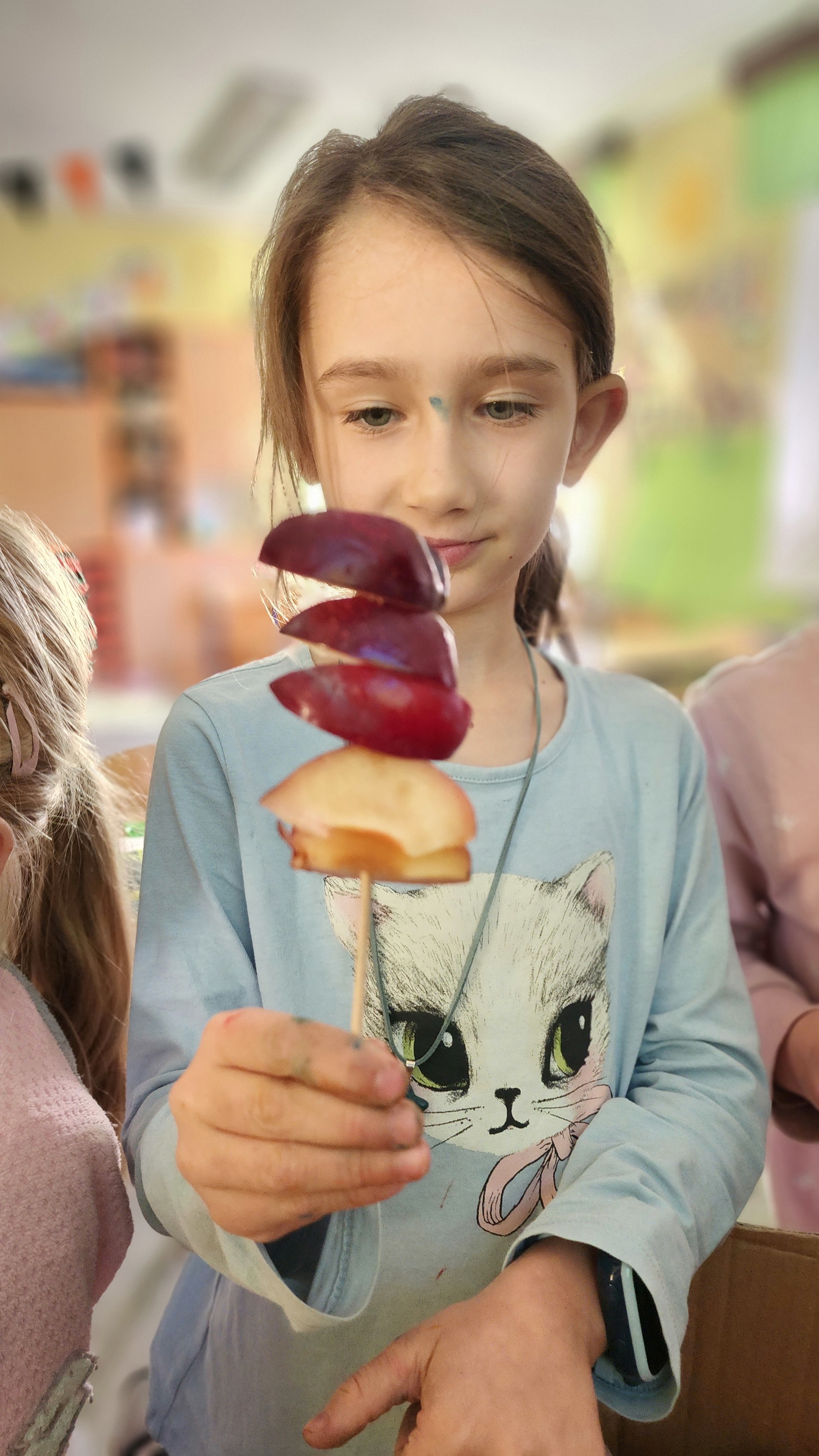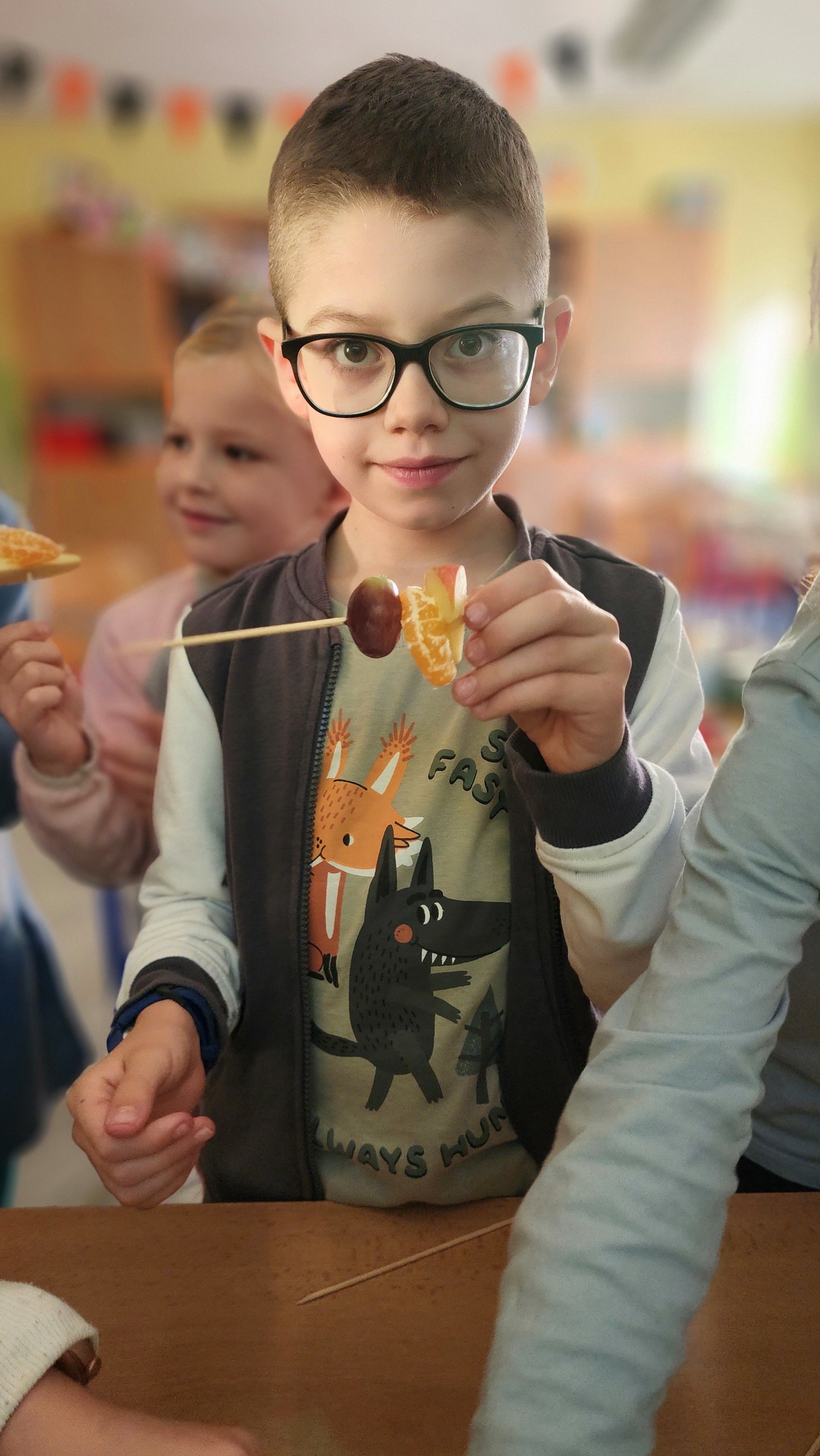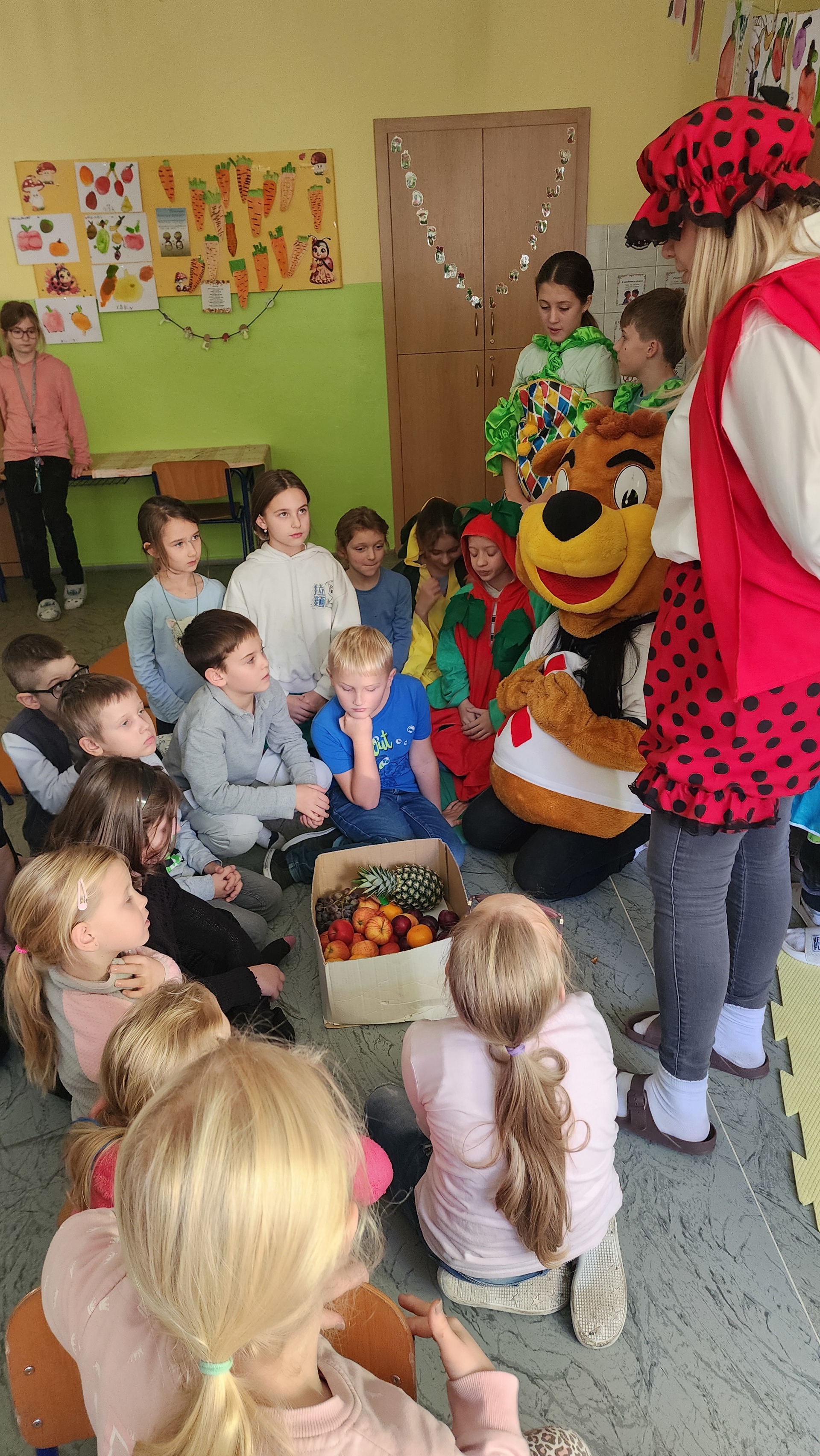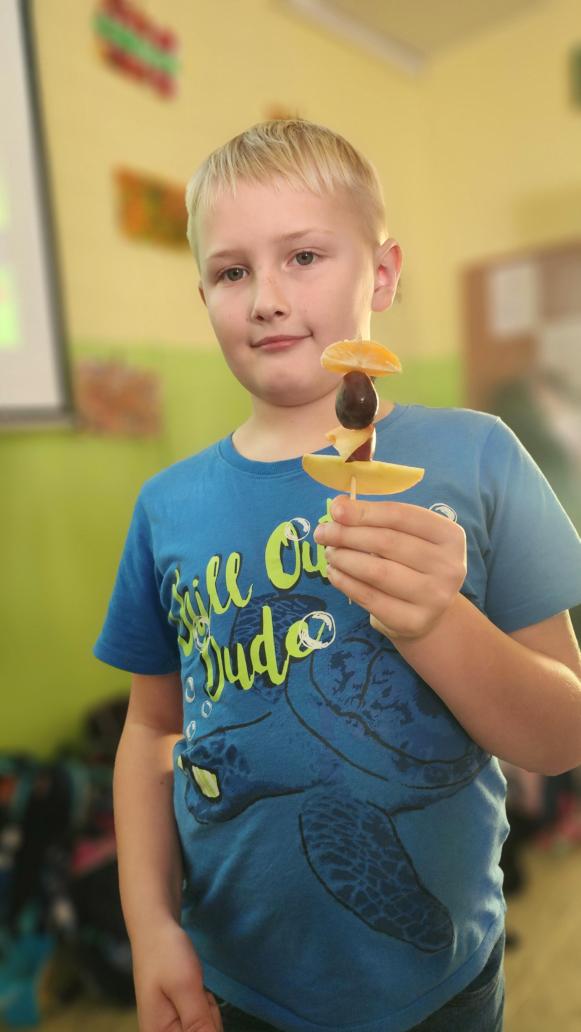 V pátek k nám zavítali maskoti a donesli nám výborné ovoce, ze kterého jsme si udělali špízy. Za chvíli nebylo po ovoci ani památky. Pustili jsme si ovocné písničky a edukační videa o ovoci a zelenině. MÁME RÁDI OVOCE!