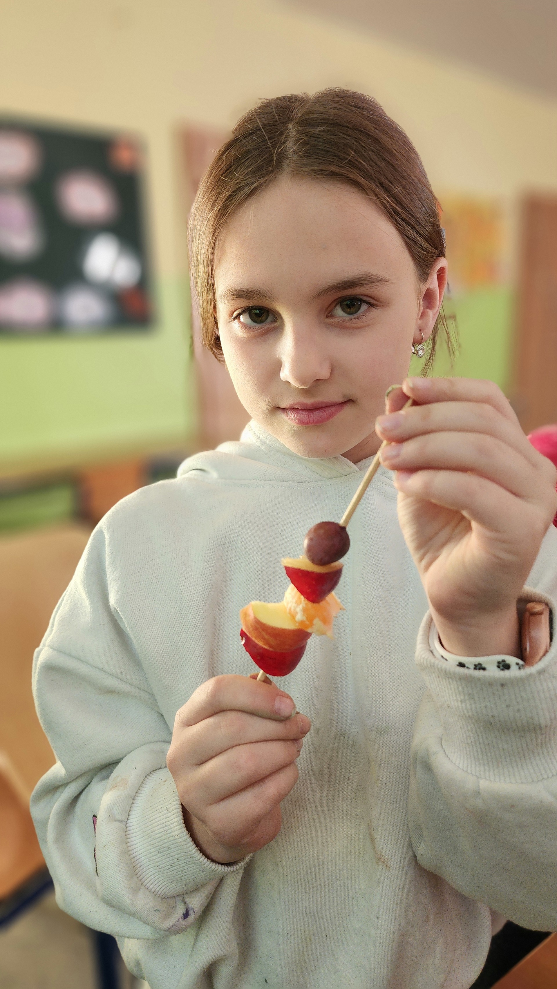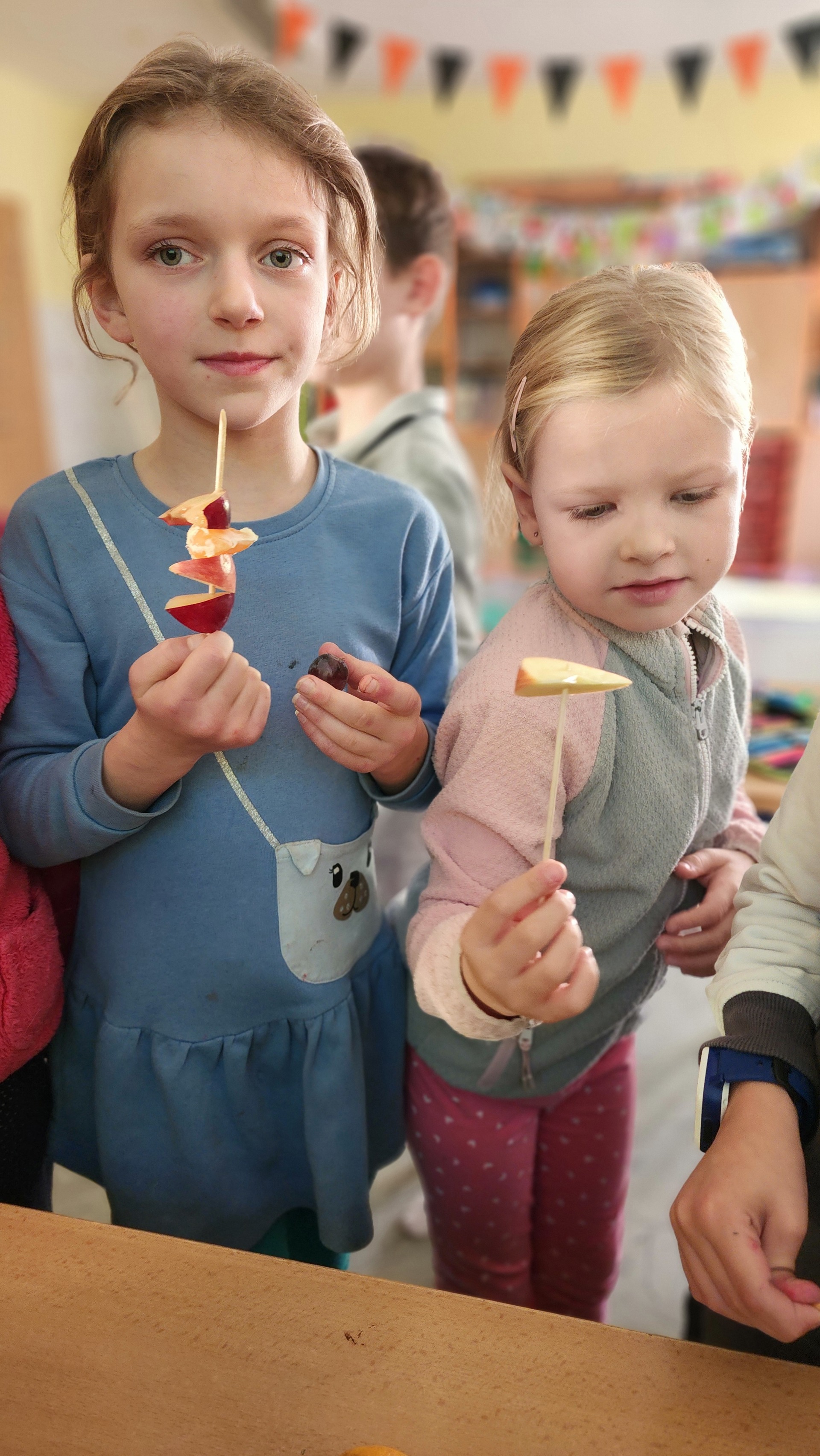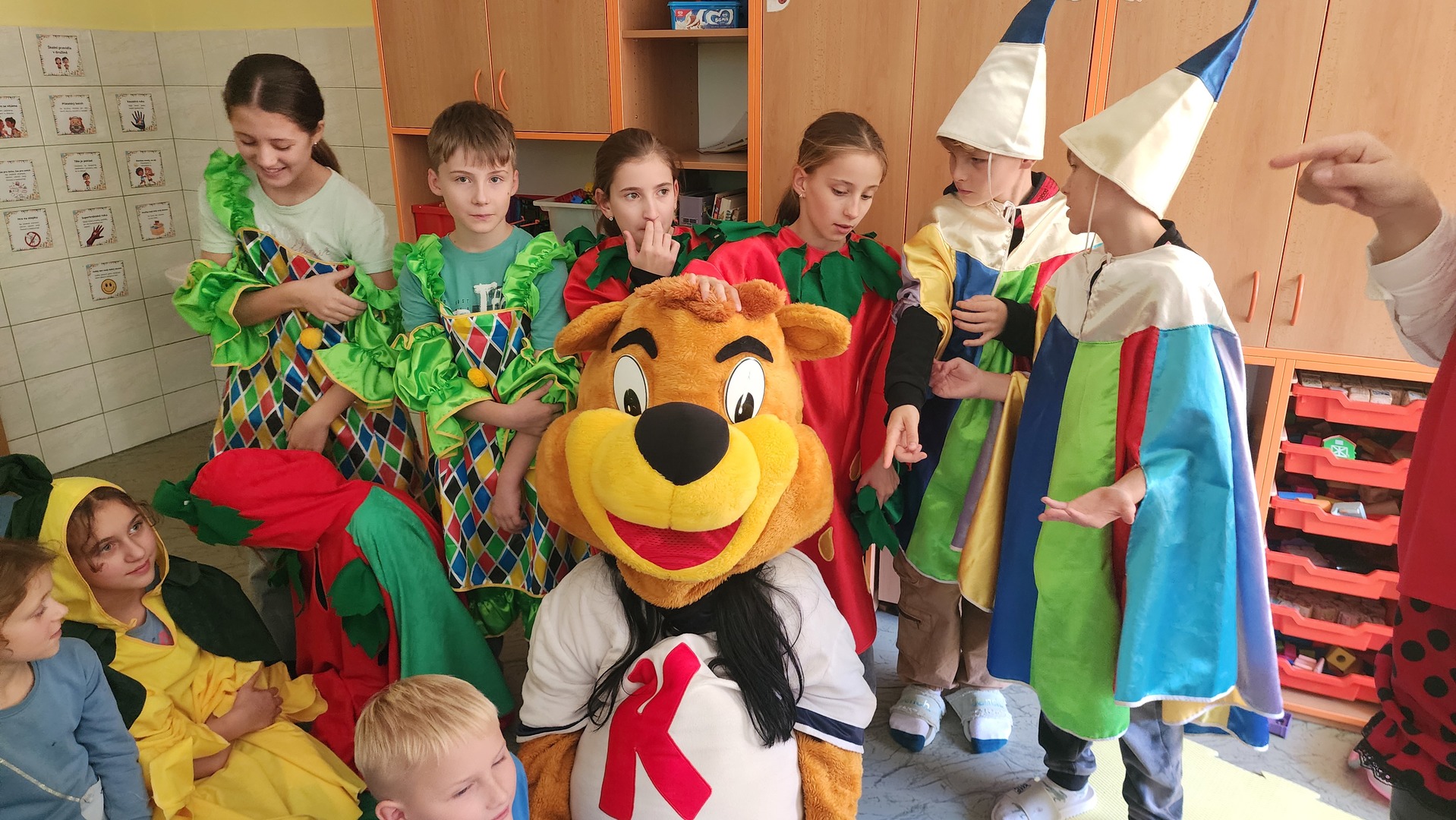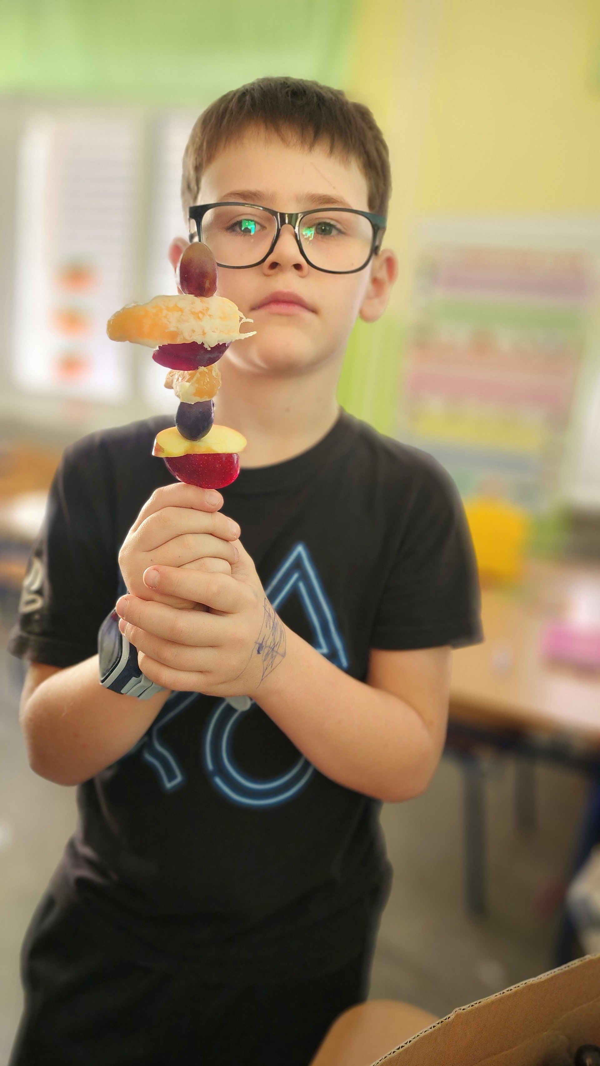 V pátek k nám zavítali maskoti a donesli nám výborné ovoce, ze kterého jsme si udělali špízy. Za chvíli nebylo po ovoci ani památky. Pustili jsme si ovocné písničky a edukační videa o ovoci a zelenině. MÁME RÁDI OVOCE!