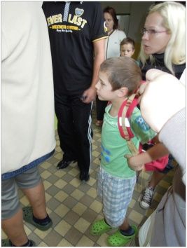 Další den jsme ukázali prvňáčkům školu, po skupinkách jsme se rozešli po naší škole a ukázali žáčkům např. tělocvičnu.