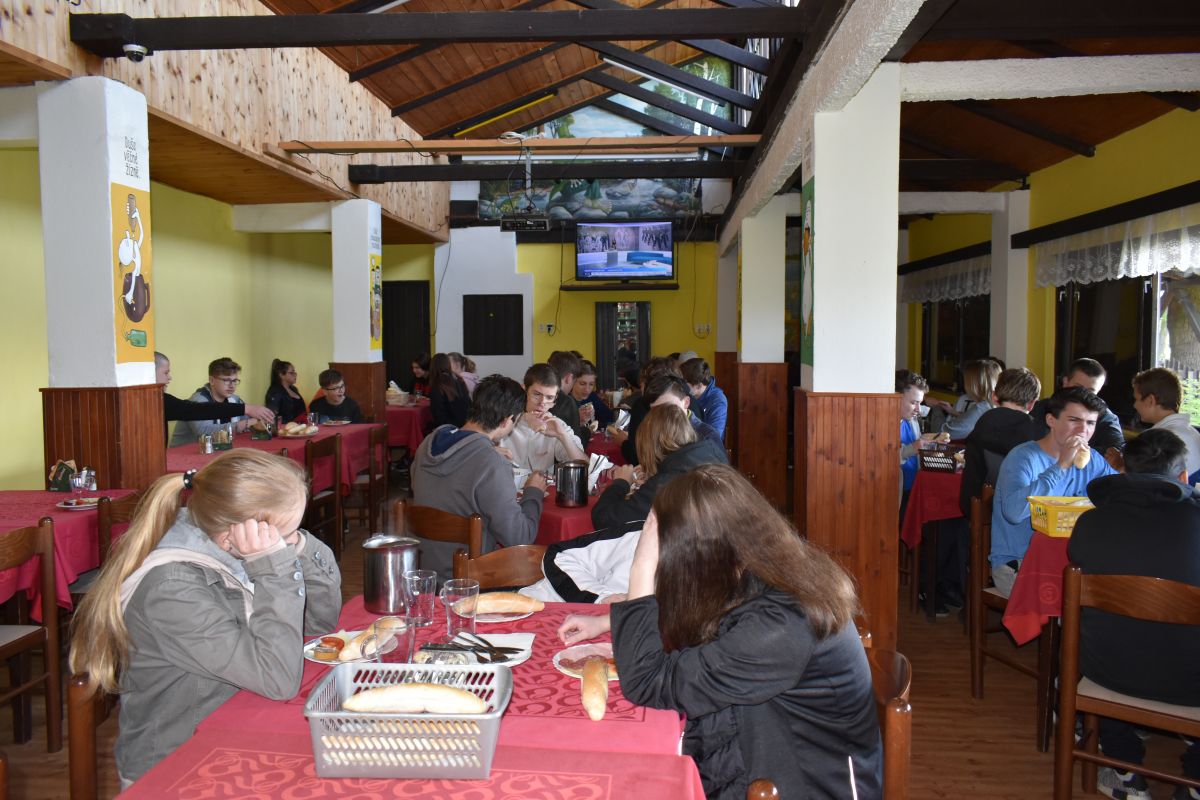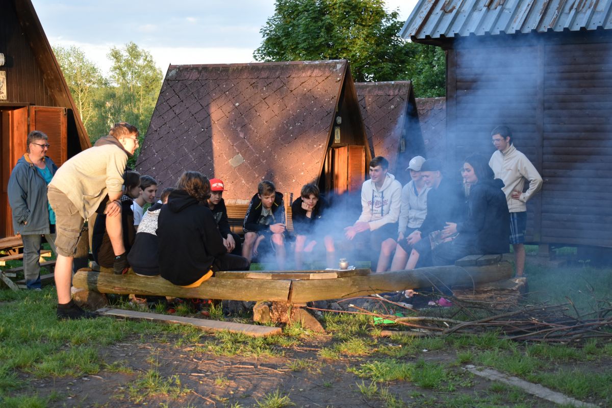 Ubytováni jsme byli v kempu Brodský v chatkách, kde jsme ve volném čase hráli volejbal, fotbal i karty.