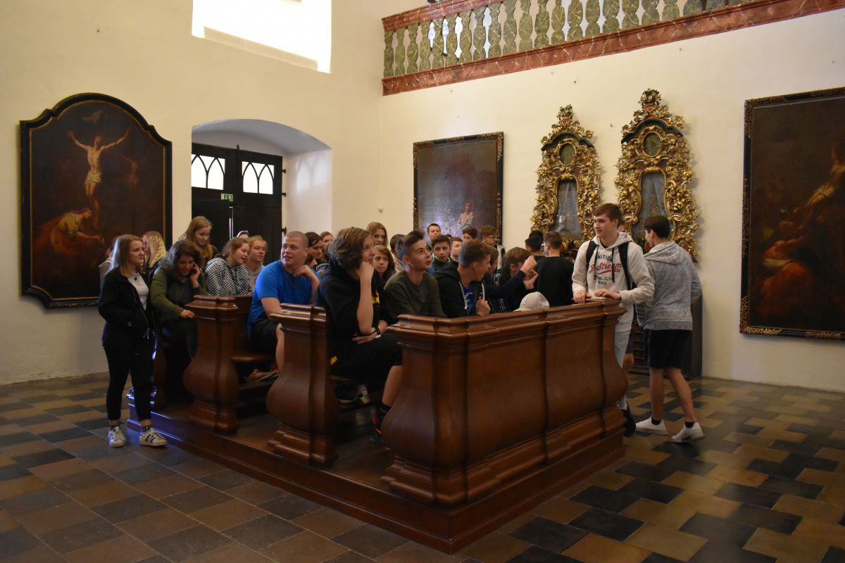 Hned první den jsme navštívili zámek Opočno, absolvovali jsme prohlídku a zhlédli jsme různé salónky, pokoje, apartmá Kinských, knihovnu, sbírku historických zbraní a obrazů. Další v programu byla pevnost Dobrošov, kde jsme se prošli podzemními chodbami 20 – 39 metrů pod povrchem terénu.