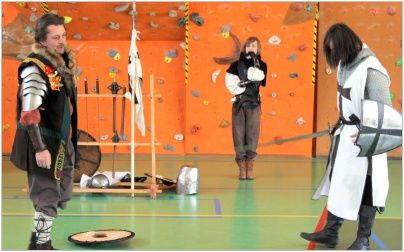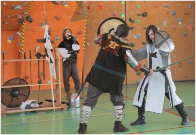 Pan Miroslav Hlinský a jeho ochotní spolupracovníci žákům VII. A a VII. B vysvětlili a předvedli mnohé z techniky středověkého způsobu života, chladných zbraní, šermířství. Zajímavý hodinový program doplnil učivo dějepisu sedmého ročníku. Děkujeme!