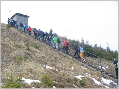 Projeli jsme kolem dolní nádrže a za chvíli jsme byli nahoře v nadmořské výšce 1350 metrů. Bylo tam větrno, ale ani to nás neodradilo, abychom si celou horní nádrž elektrárny dokola obešli a chvíli si tam nahoře pobyli. Po důkladném promrznutí jsme pak mohli jet zpět dolů, kde jsme si elektrárnu prohlédli zevnitř „pod slupkou“ a shlédli naučné video o fungování celé elektrárny. Dozvěděli jsme se např., že tato elektrárna je jediná svého druhu v Česku a v energetické soustavě plní rezervní funkci. Z infocentra pokračujeme do vnitřku hory. Elektrárna je totiž řešena jako podzemní dílo. Asi 300 metrů dlouhým tunelem nás průvodce vede do kaverny, kde jsou umístěny obě reverzní turbíny. Ty umožňují největší instalovaný výkon v Česku - dvakrát 325 MW. Po vyložení průvodce v lyžařském městečku Kouty nad Desnou a nakoupení hrstky pohlednic