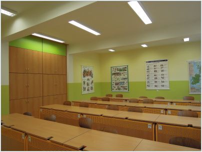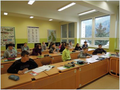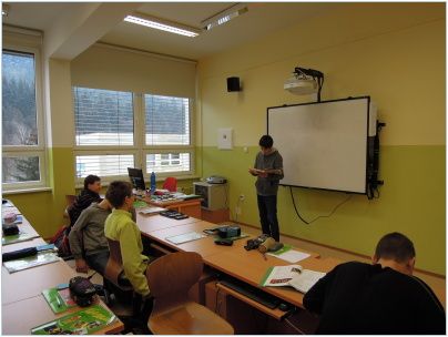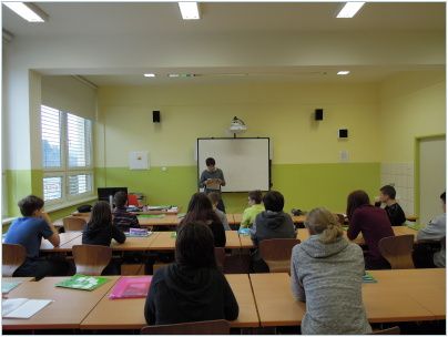 Výuka probíhá v nově zřízené jazykové učebně, ve které má vyučující k dispozici interaktivní tabuli, počítač i dataprojektor.