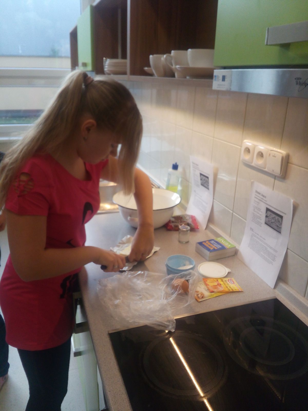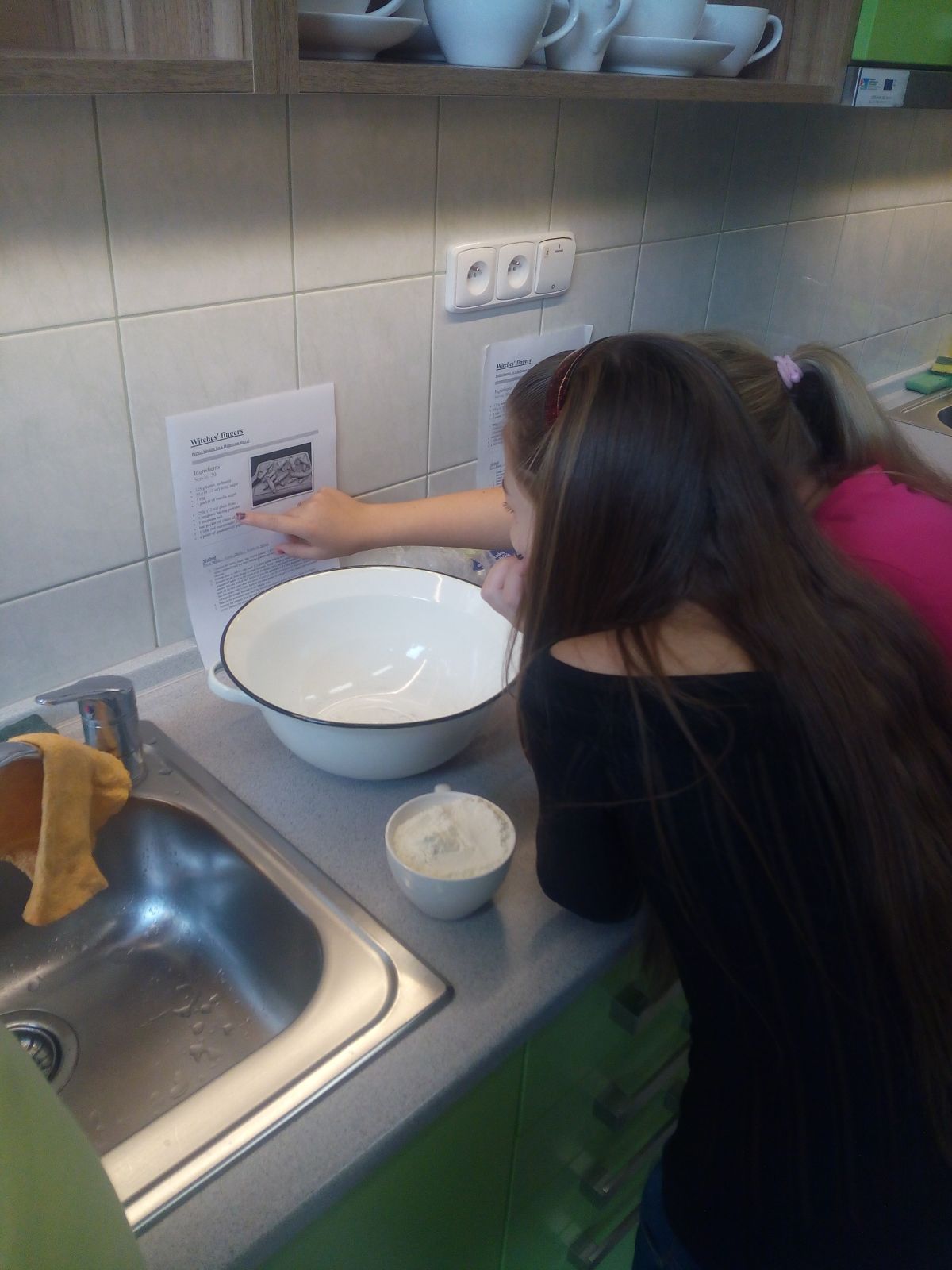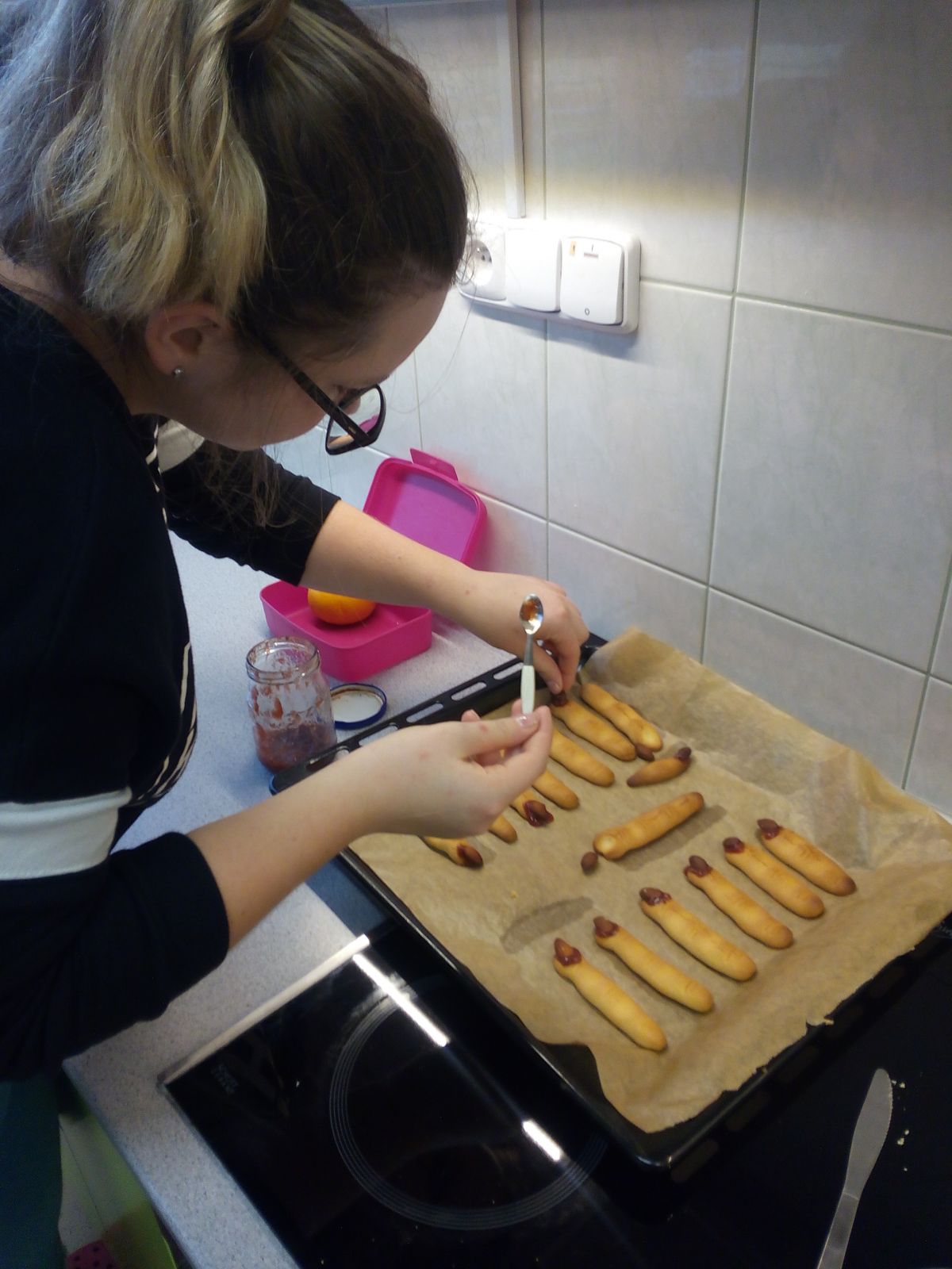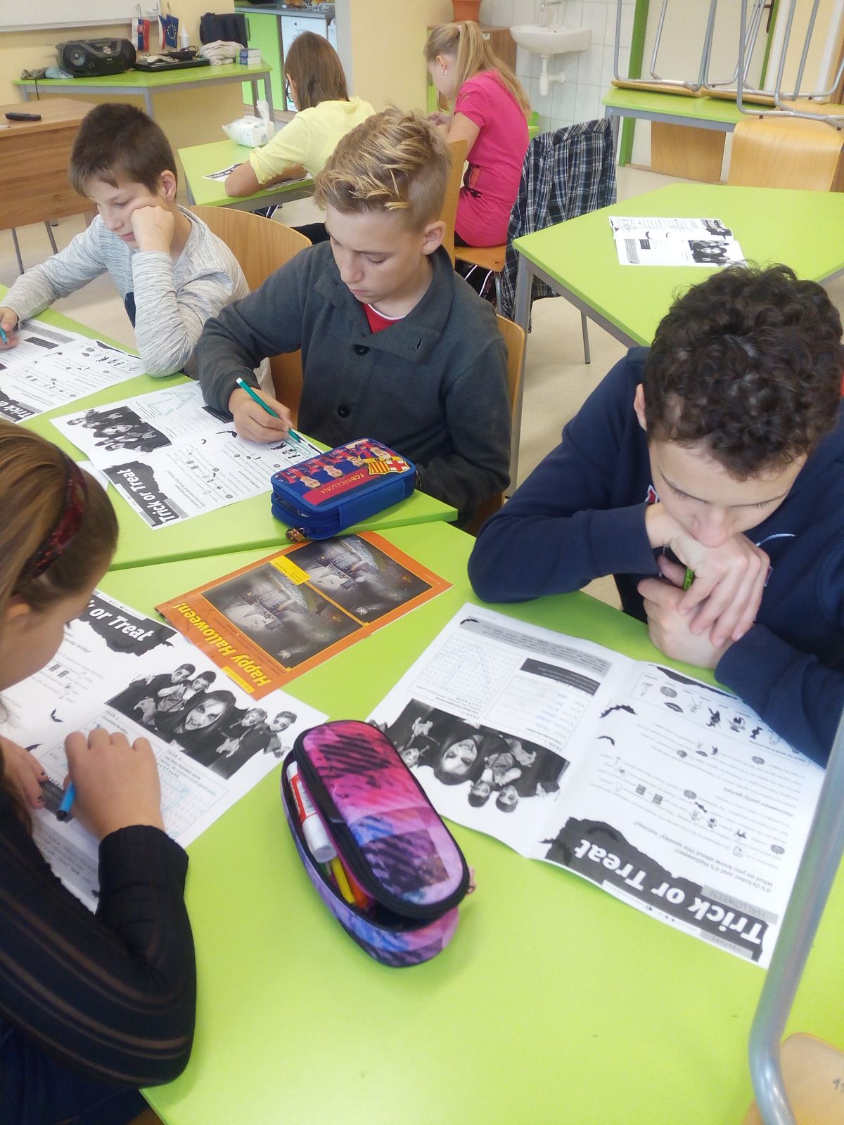 Žáci si upekli na první pohled hrůzostrašný avšak velmi chutný pokrm WITCHES‘ FINGER. Celou dobu postupovali podle tištěného receptu v anglickém jazyce. Návod, jak správně postupovat, zhlédli i na youtube. Dvouhodina velmi příjemného pečení byla doplněna o pracovní list zaměřený zejména na prohloubení slovní zásoby formou doplňovaček a osmisměrek. Na závěr si děti mohly přečíst halloweenský komiks.