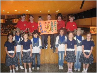 Naše soutěžící družstvo : Jiří Fojtík, Roman Hajda, Iva Stejskalová, Jiří Bruštík, Zuzana Horáková , Tomáš Hanák, skončilo na půl cesty k vítězství. Za pěkné výkony všem děkujeme. Povzbuzovat spolužáky a předvést své vystoupení přijely country tanečnice -Texasky.