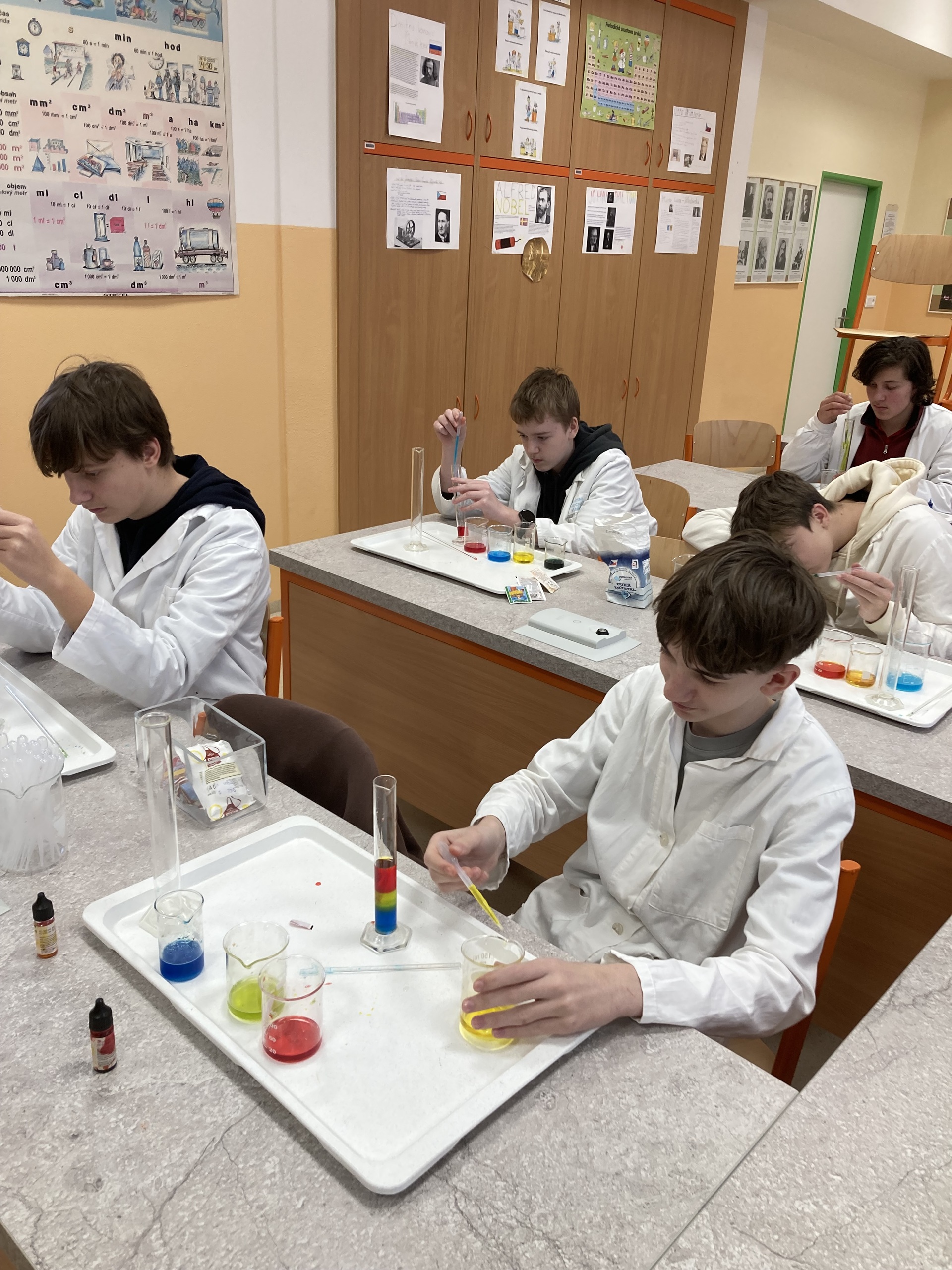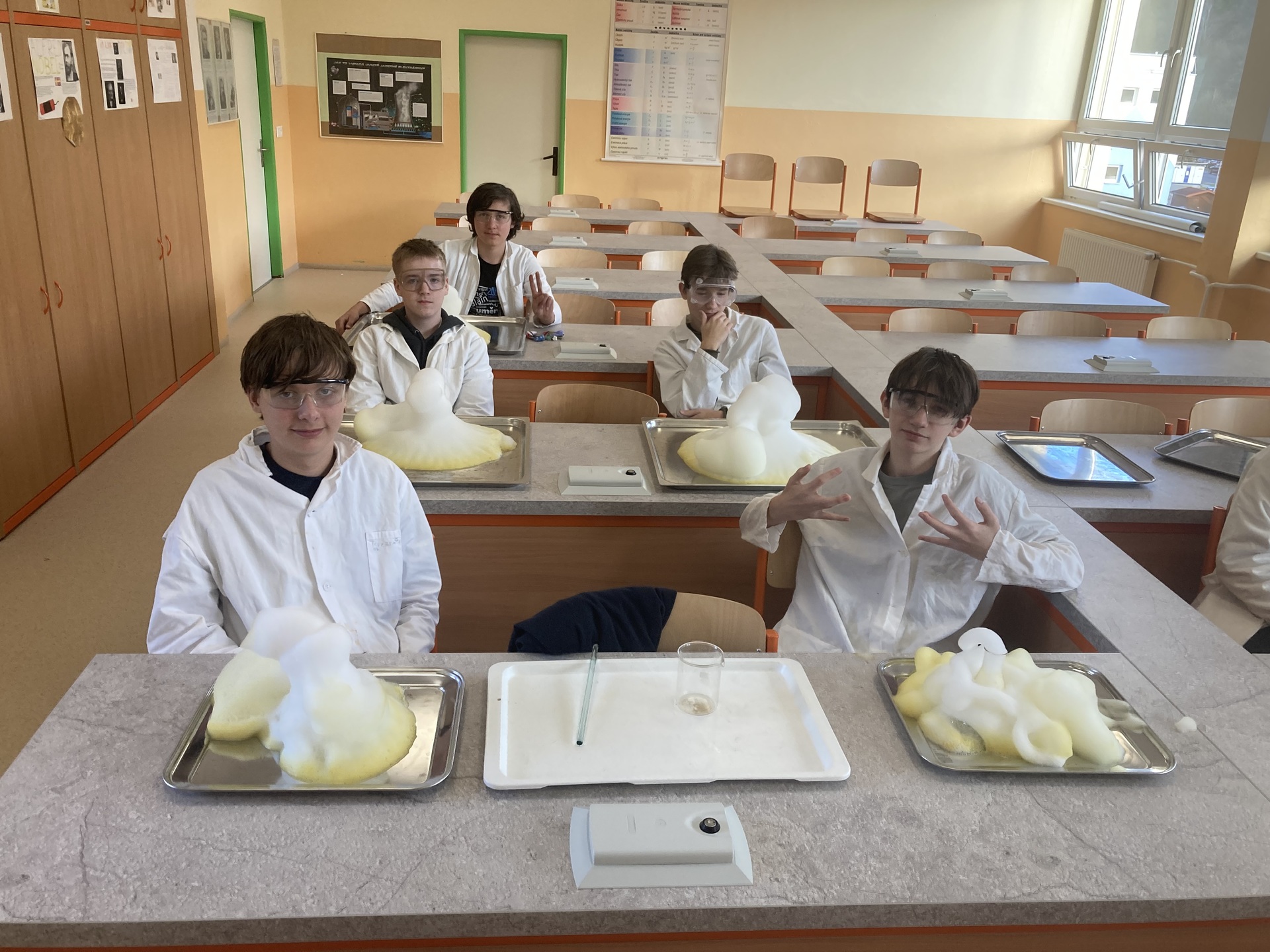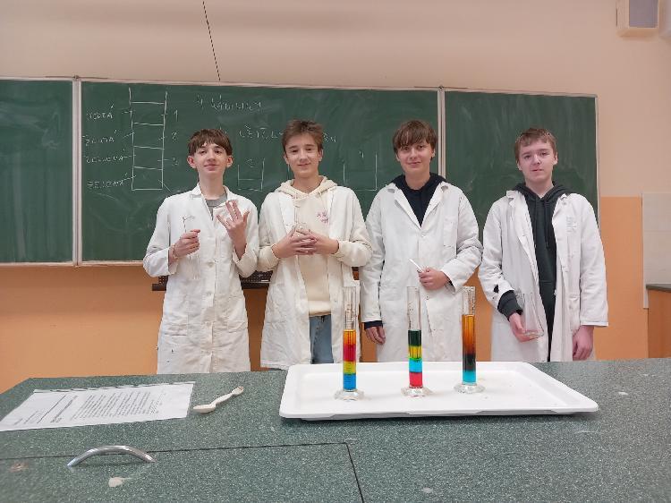 I tento školní rok se našlo pár nadšenců, kteří se přihlásili do kroužku Zábavné chemie. V tomto kroužku mícháme barevné roztoky, sledujeme nečekané reakce, vyrábíme jednoduchá chemická  " kouzla" a objevujeme, že chemie není jen o vzorečcích v sešitě, ale hlavně o pochopení toho, jak funguje svět kolem nás a také ukazuje, že učení může být zábava. Mgr. Jiří Vařejka