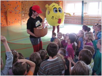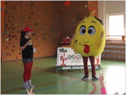 V pátek 13. listopadu 2015 proběhla v rámci školní družiny vzdělávací přednáška o ovoci a zelenině. Zábavnou formou sympatická moderátorka a firemní maskot citrón učili děti, proč je důležité jíst ovoce a zeleninu. V tělocvičně se sešla stovka žáků školní družiny a školního klubu z 1.-5. tříd a doslova hltaly zábavný testík plný otázek . Za správné odpovědi dostaly děti vitamínové a věcné odměny.