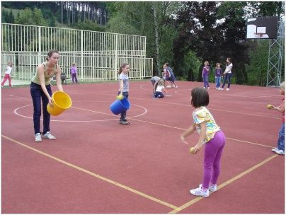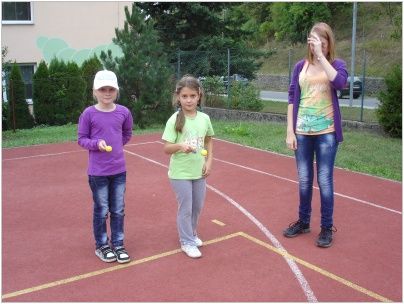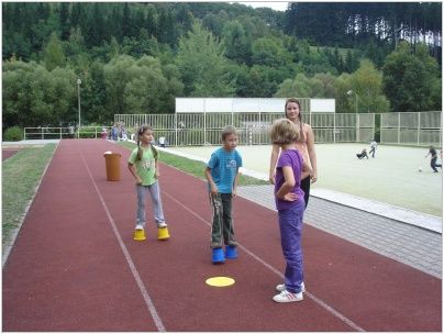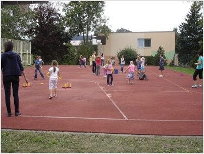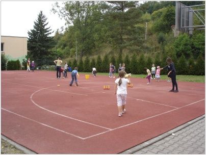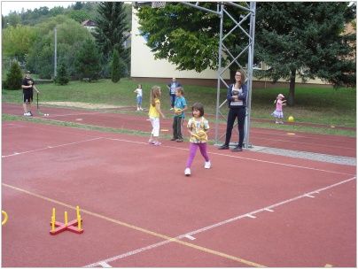 Děti si mohly vyzkoušet přesnost svého hodu, zda umí běhat např.na chůdách, zda jsou šikovné na hru s florbalkou a jiné další hry. Děti se dobře pobavily a hodinka sportování jim velmi rychle uběhla. K dobré atmosféře tohoto odpoledne přispěly i žákyně 9.B - Alena Valešová, Katka Šimková, Katka Prikrylová, Markéta a Kristýna Surovcové, Jitka Strbačková a Věra Trlicová. Všem díky a někdy příště na další akci.