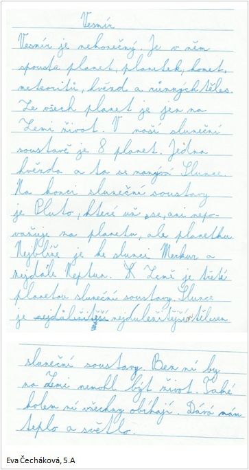 Druzí měli třeba na čtvrtce papíru povídání o černých dírách a družicích a na druhé čtvrtce měli o slunci a o měsíci a na půlce papíru si kreslili.