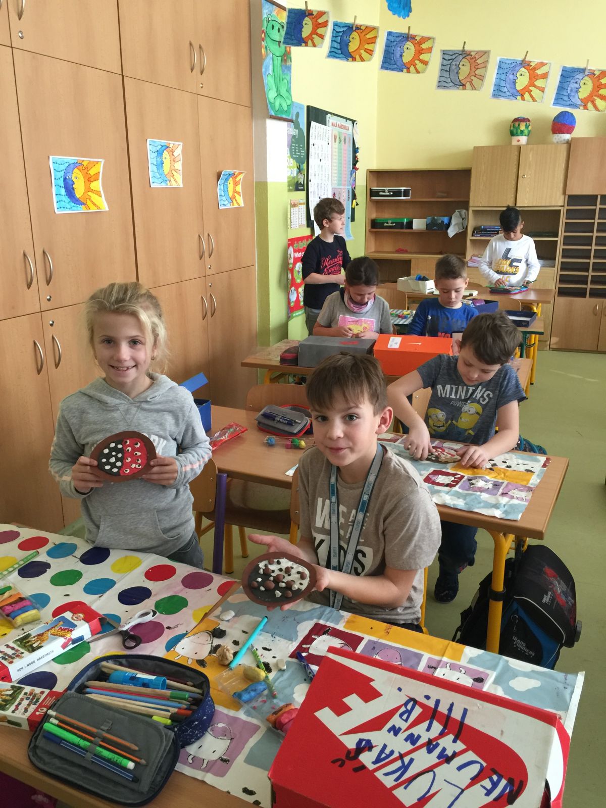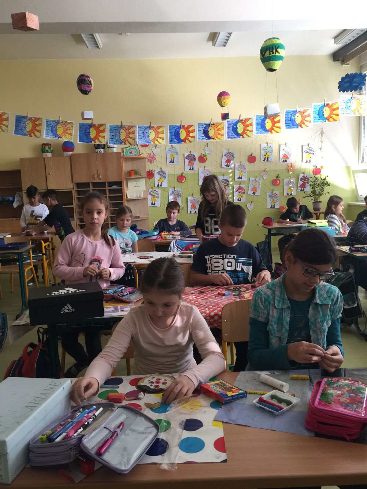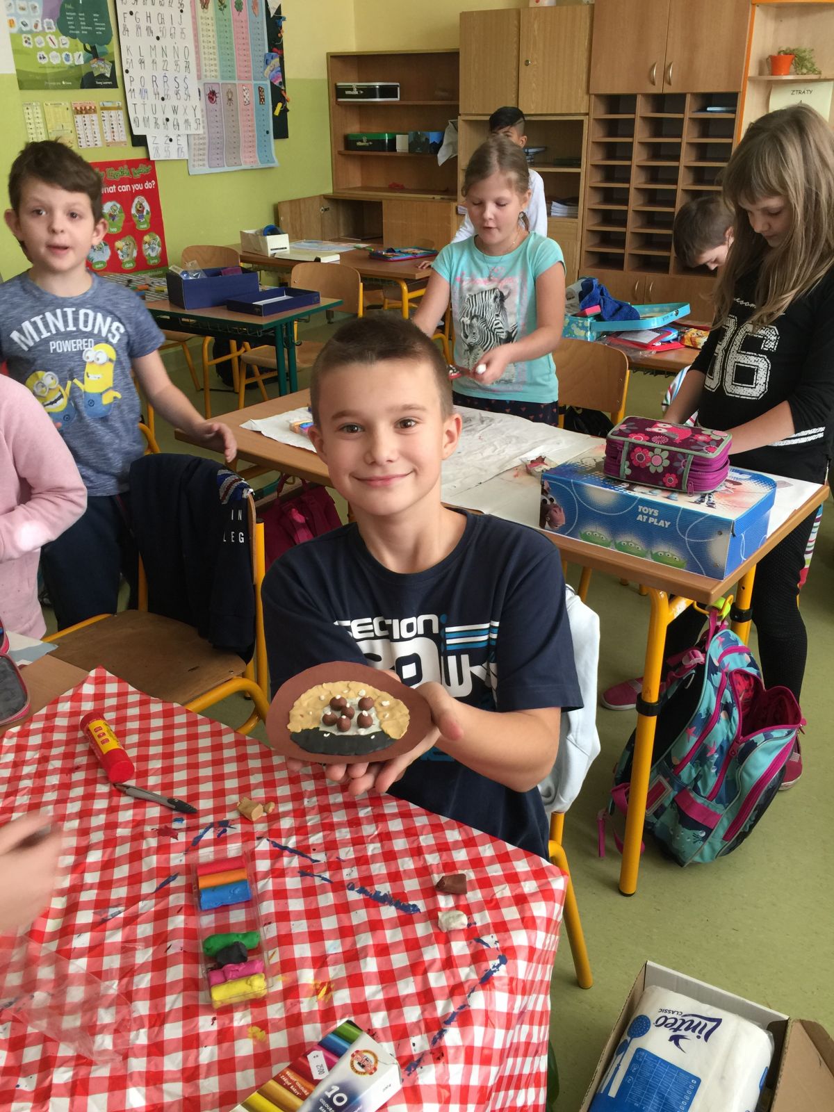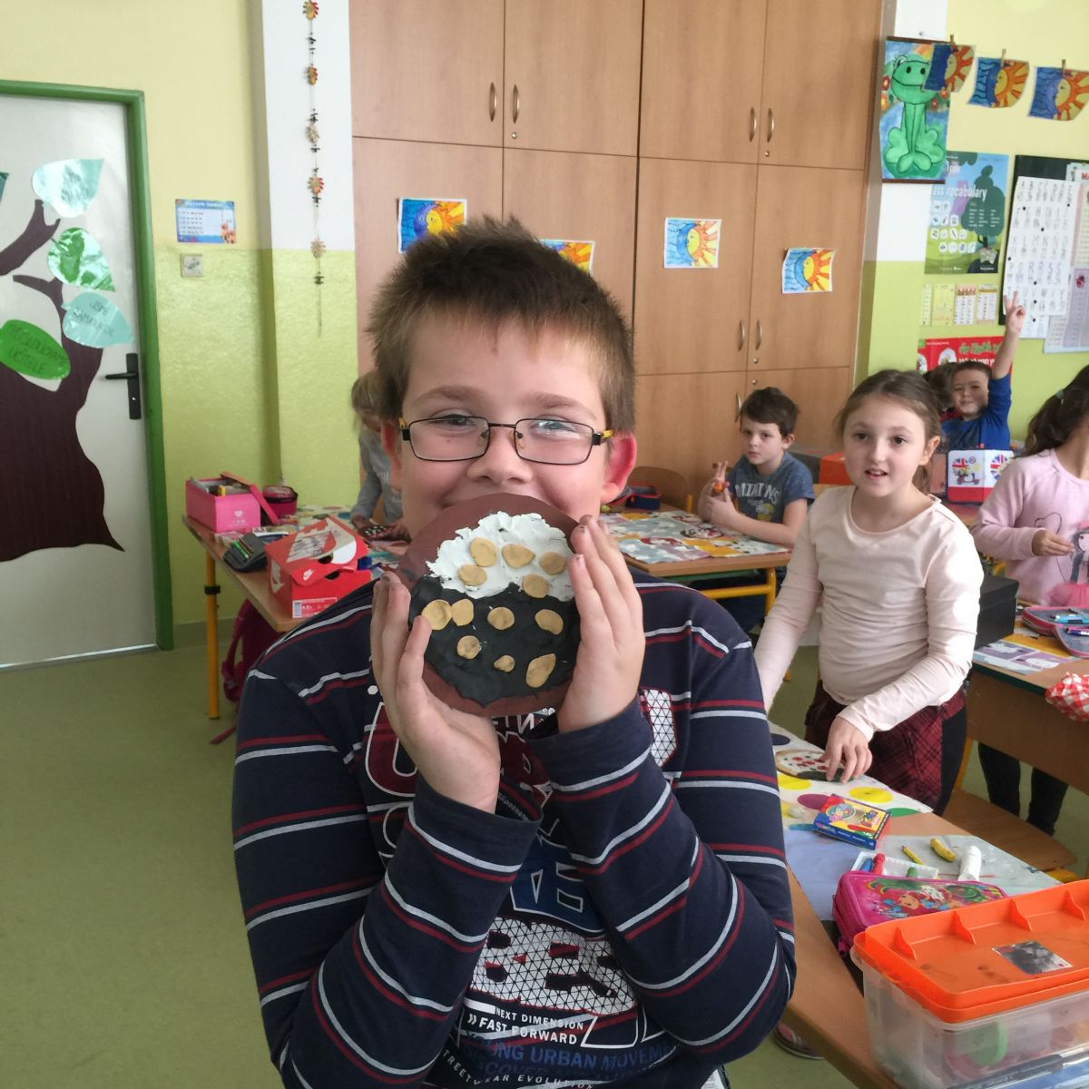 V hodinách výtvarné výchovy si žáci za pomoci plastelíny vyrobili koláče, které poté naplnili různými "náplněmi". Na řadu přišel tvaroh, mák, povidla, ale i marmeláda. Na závěr jsme vše dozdobili posypkou.