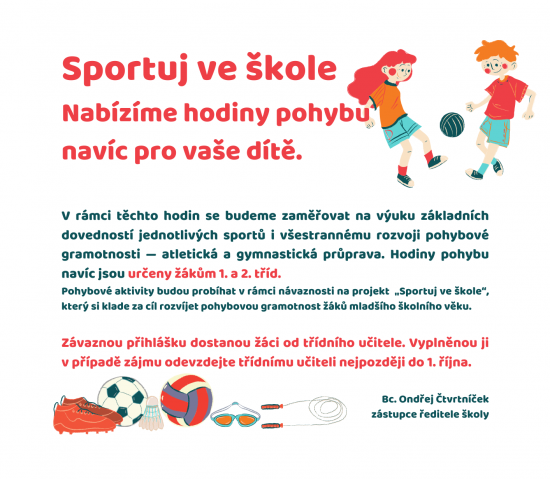 Jsme rádi, že můžeme u našich žáků rozvíjet a podporovat pohybovou aktivitu dalšími hodinami navíc.