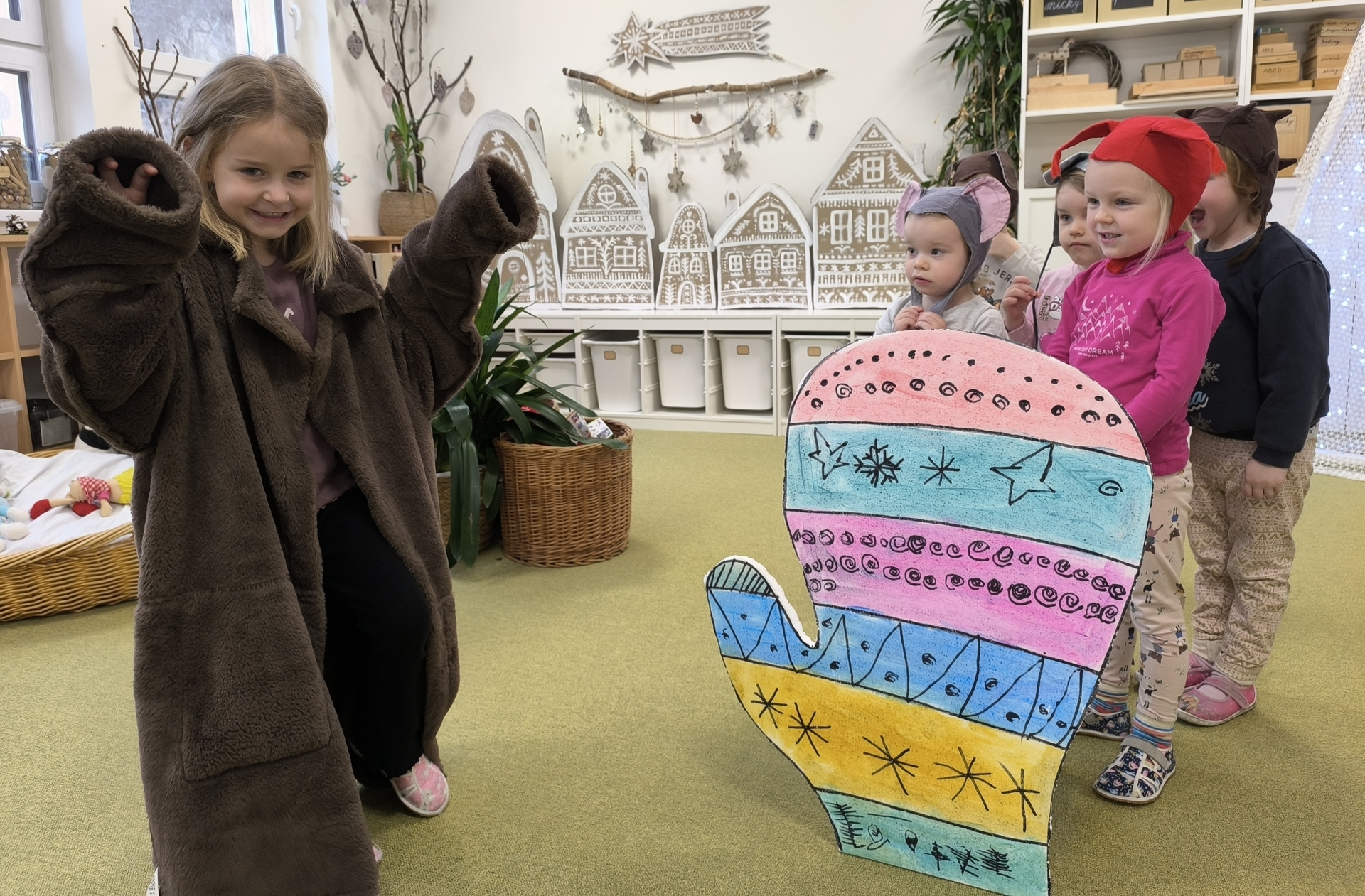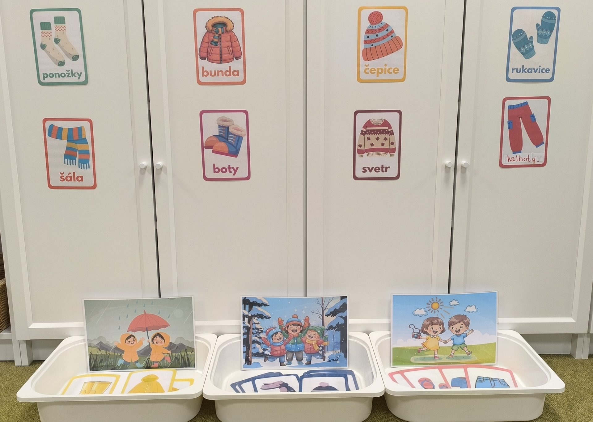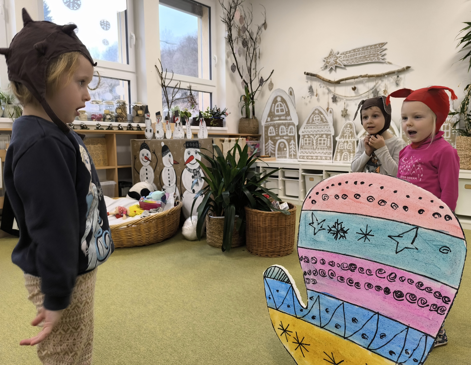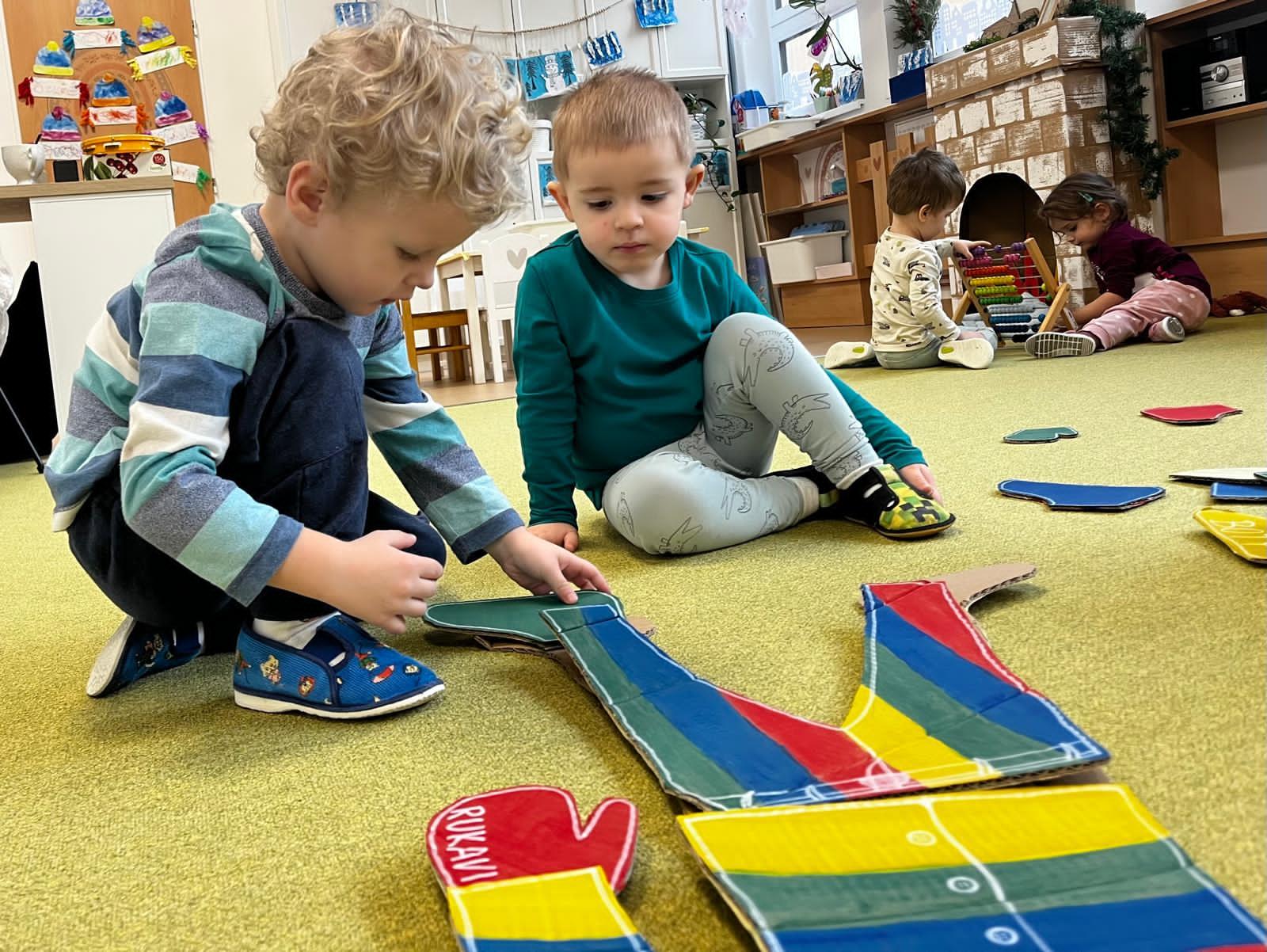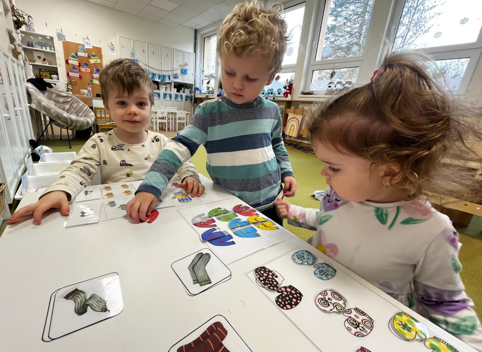 Seznamujeme se se zimním oblečením. Povídáme si o tom, co nás zahřeje, zkoušíme si čepice, šály i rukavice.