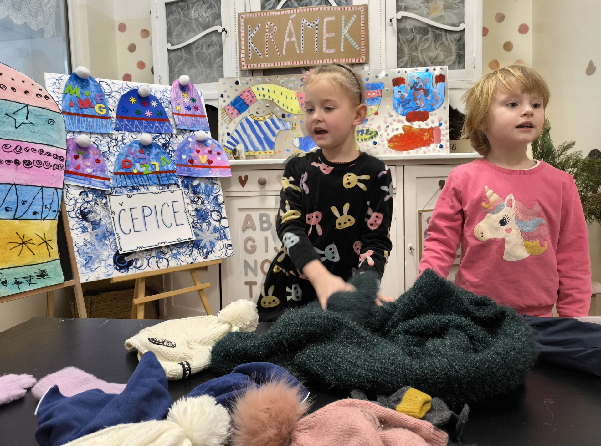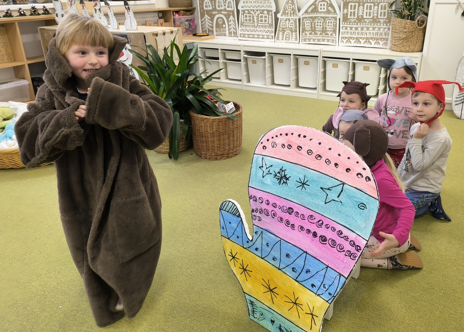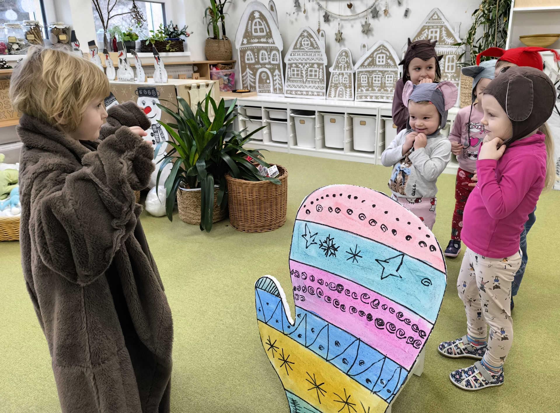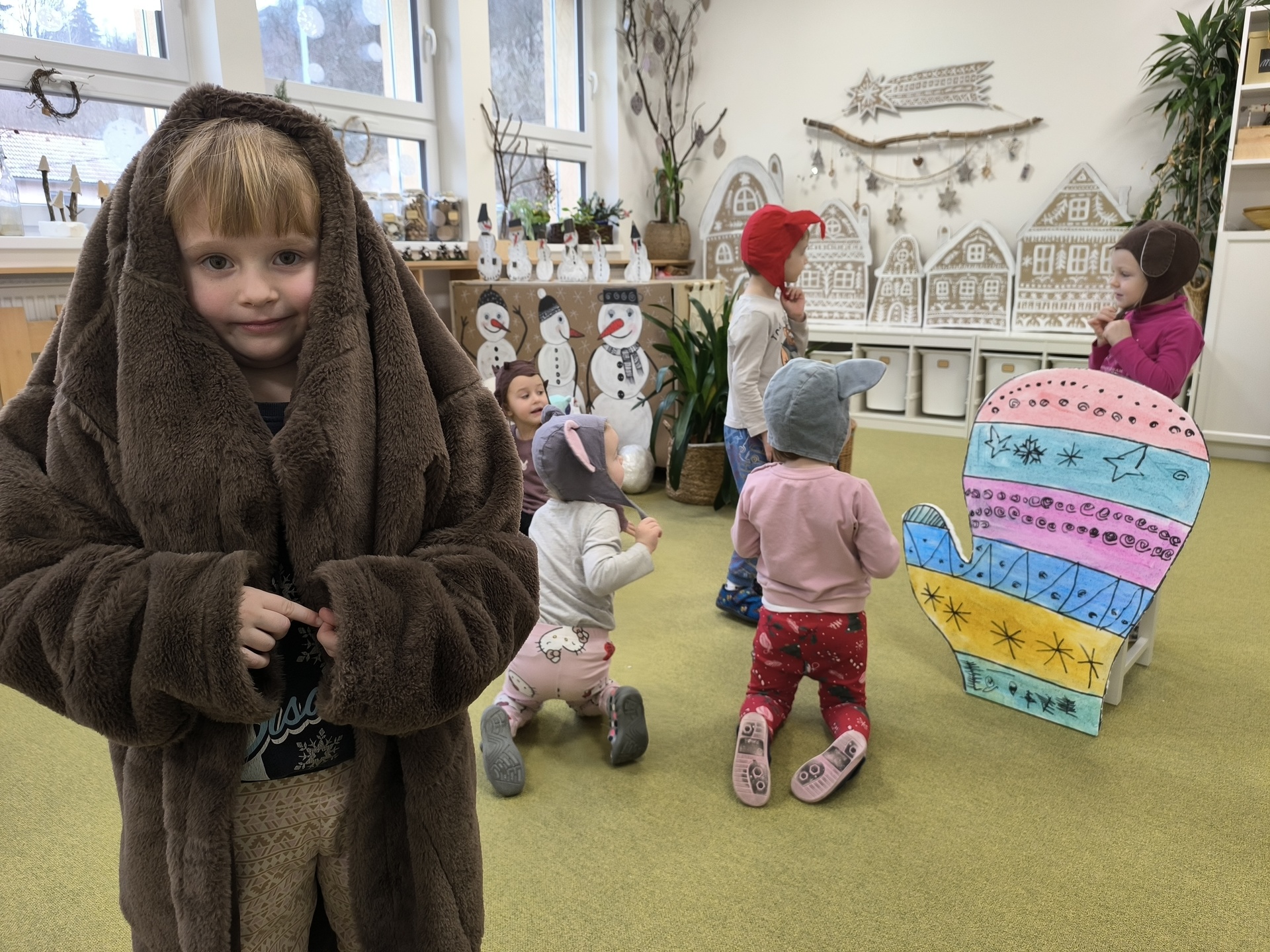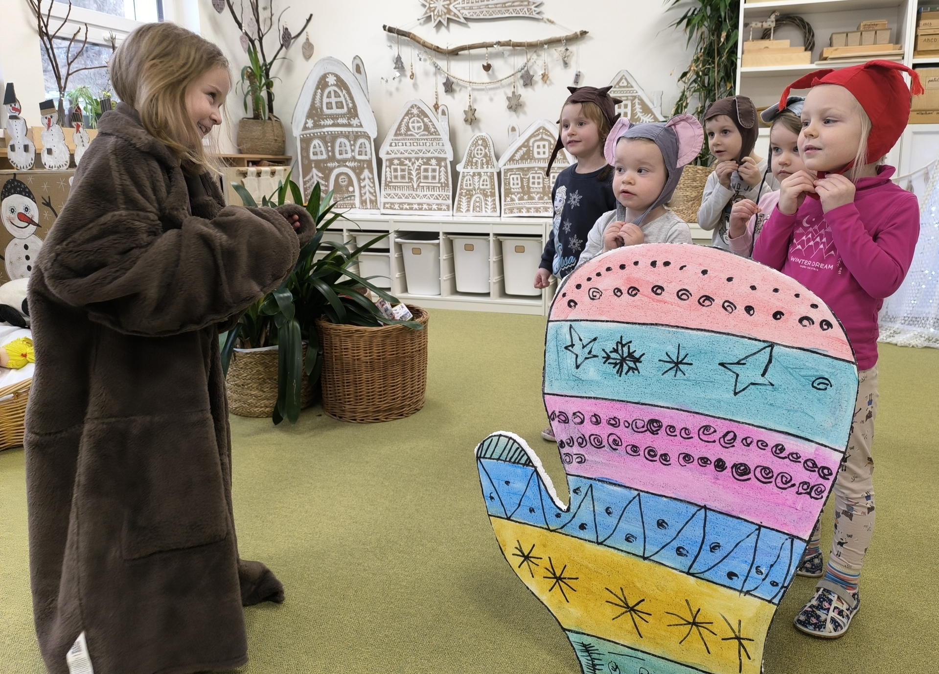 Seznamujeme se se zimním oblečením. Povídáme si o tom, co nás zahřeje, zkoušíme si čepice, šály i rukavice.