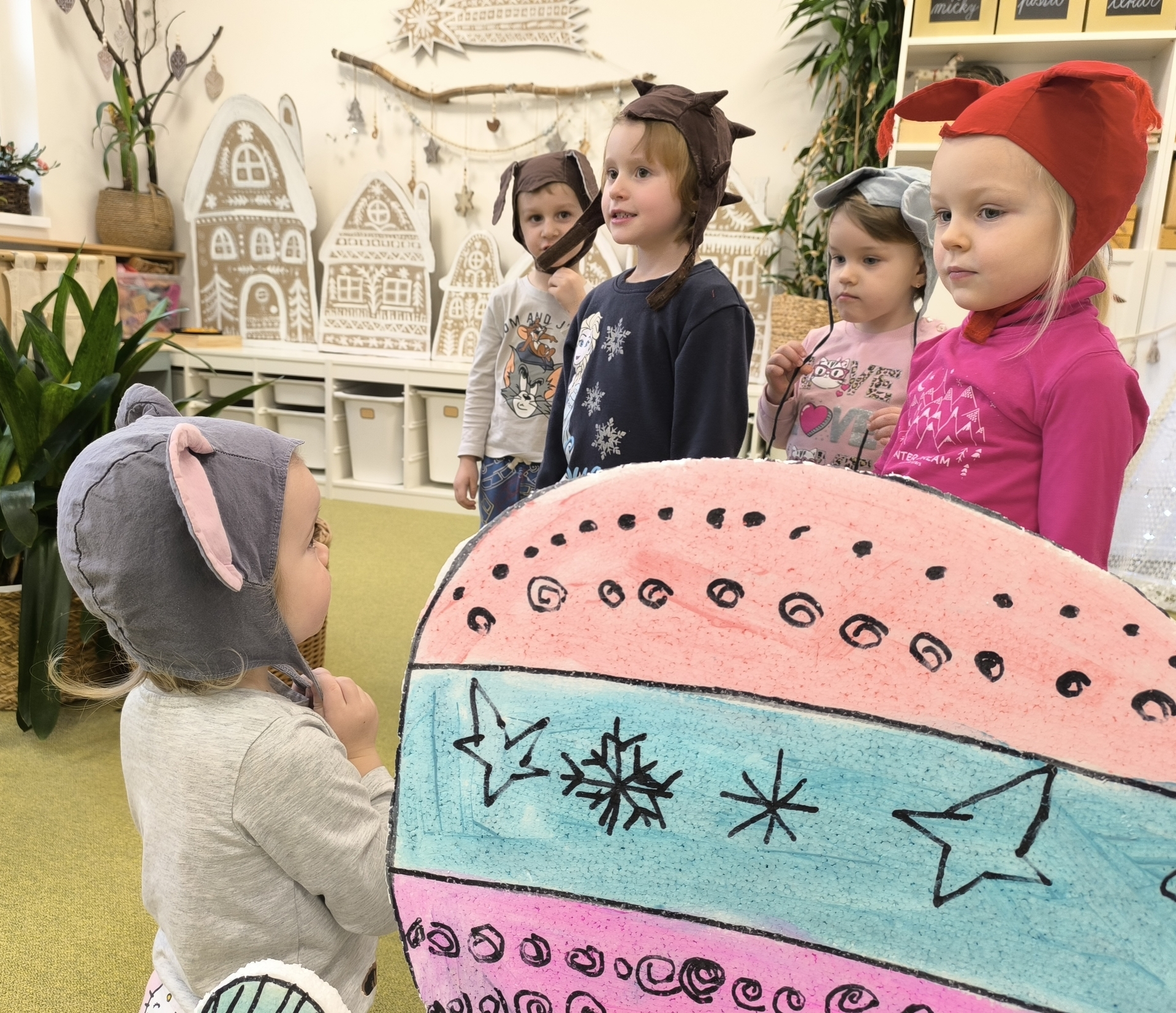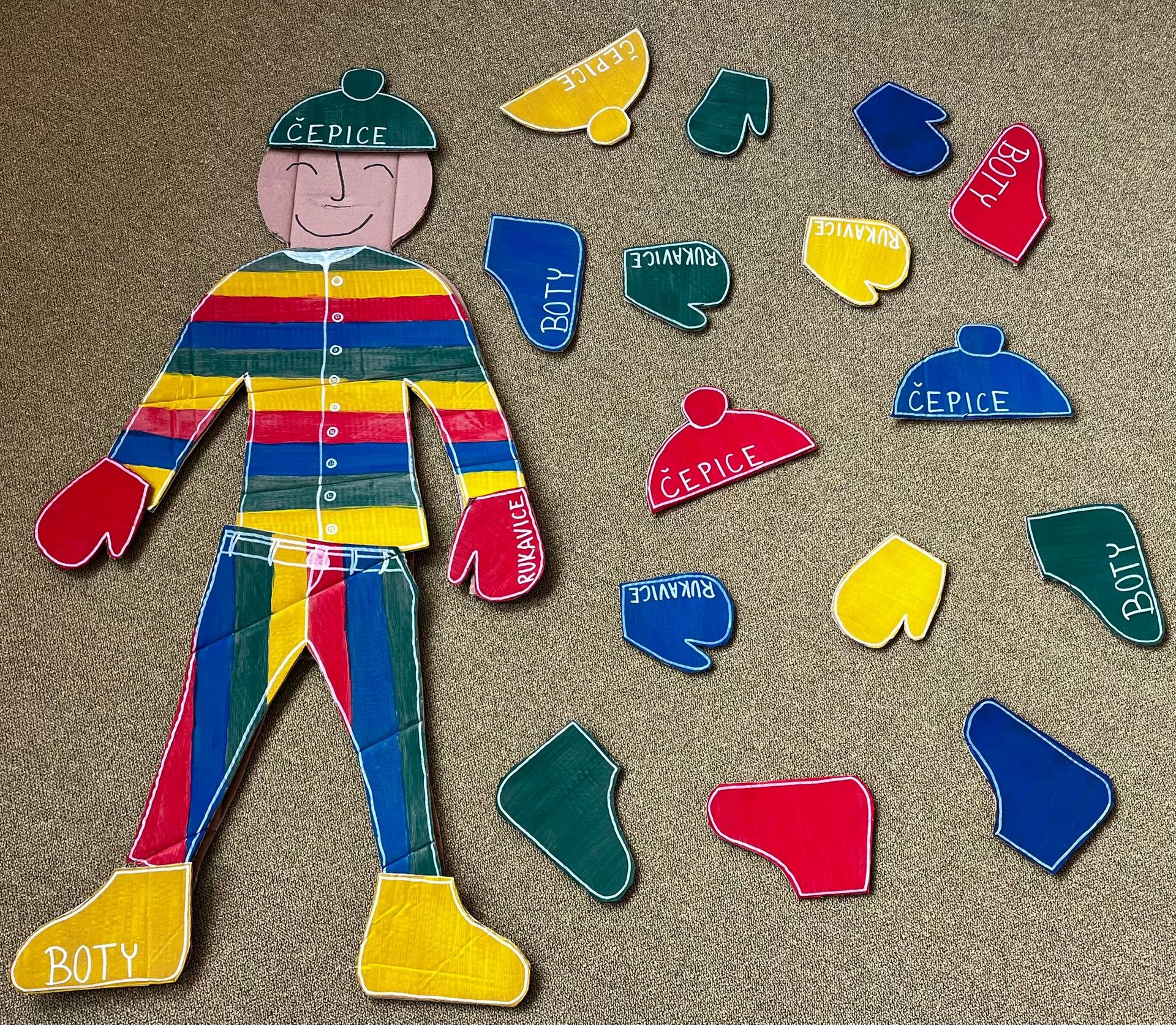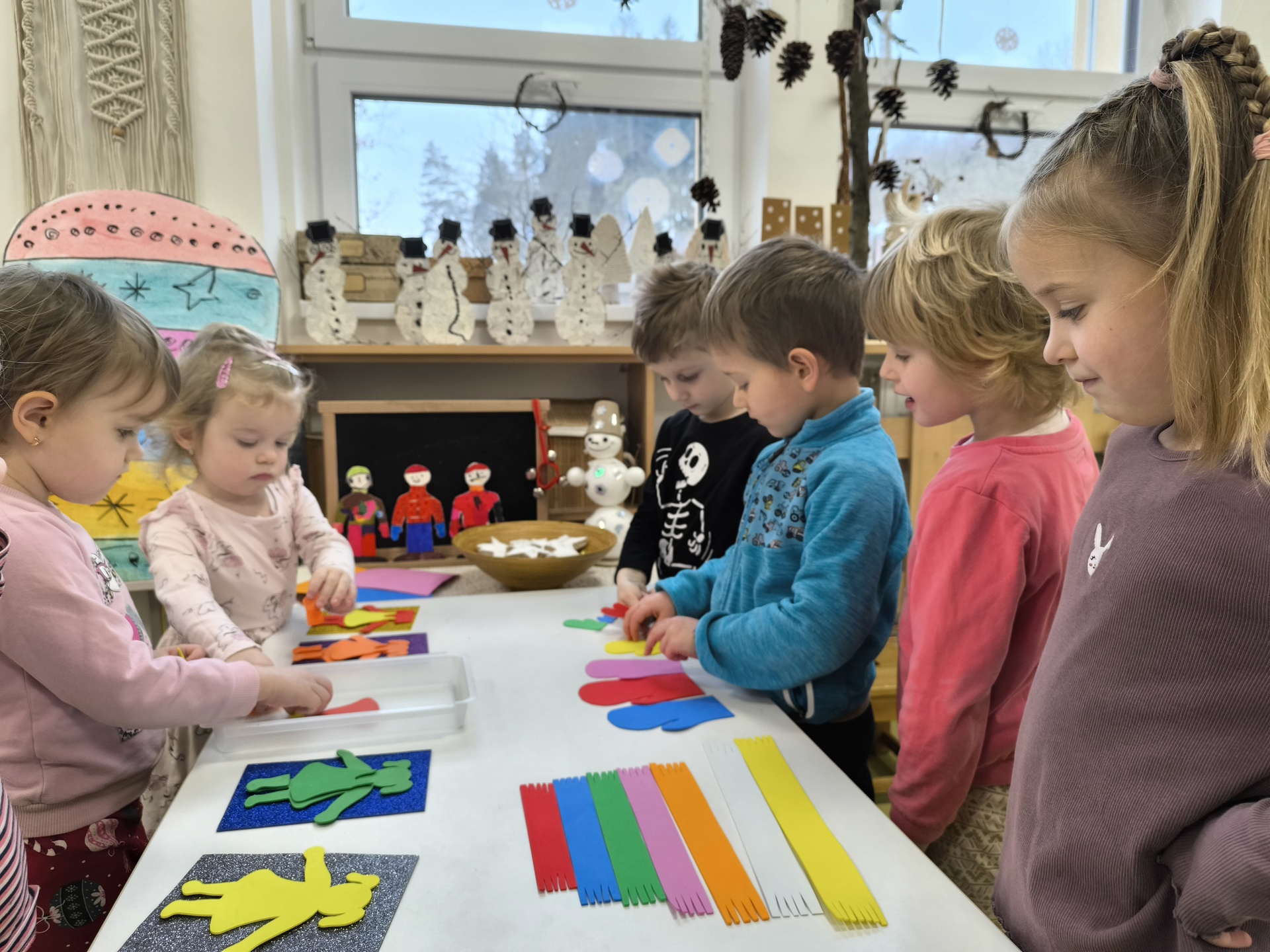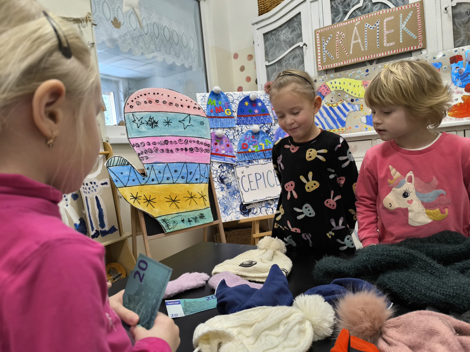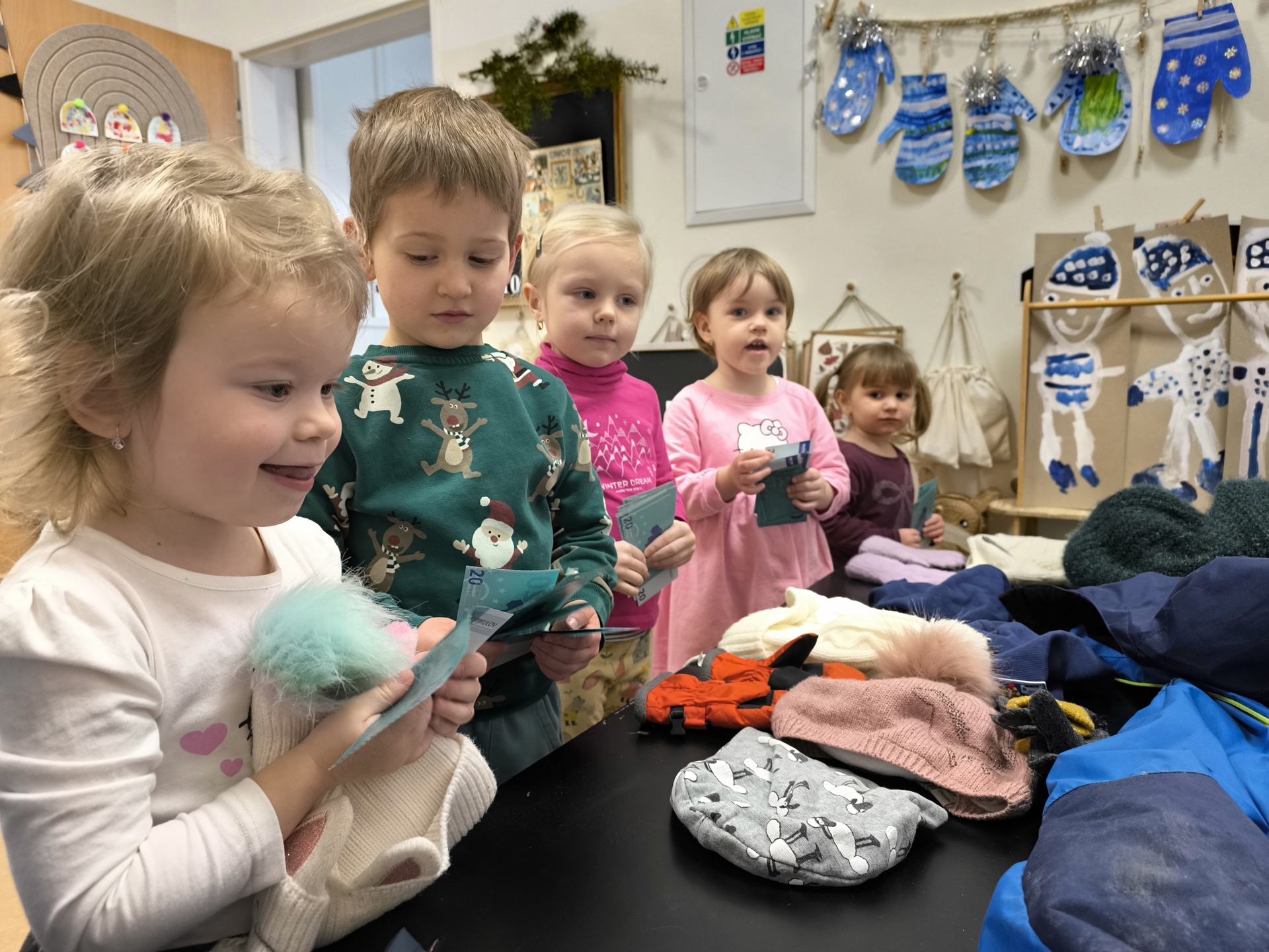 Seznamujeme se se zimním oblečením. Povídáme si o tom, co nás zahřeje, zkoušíme si čepice, šály i rukavice.