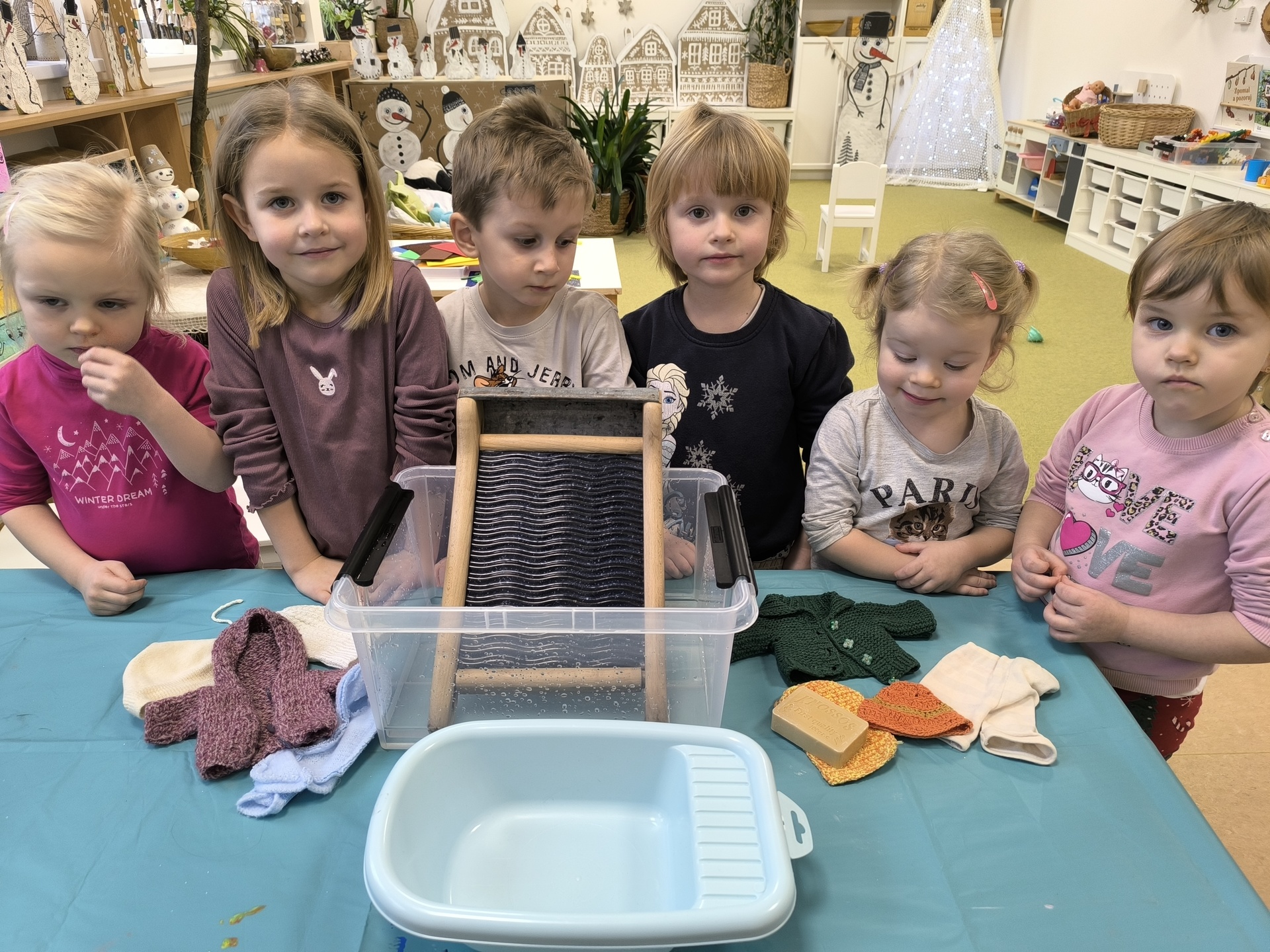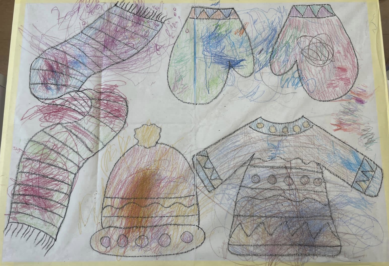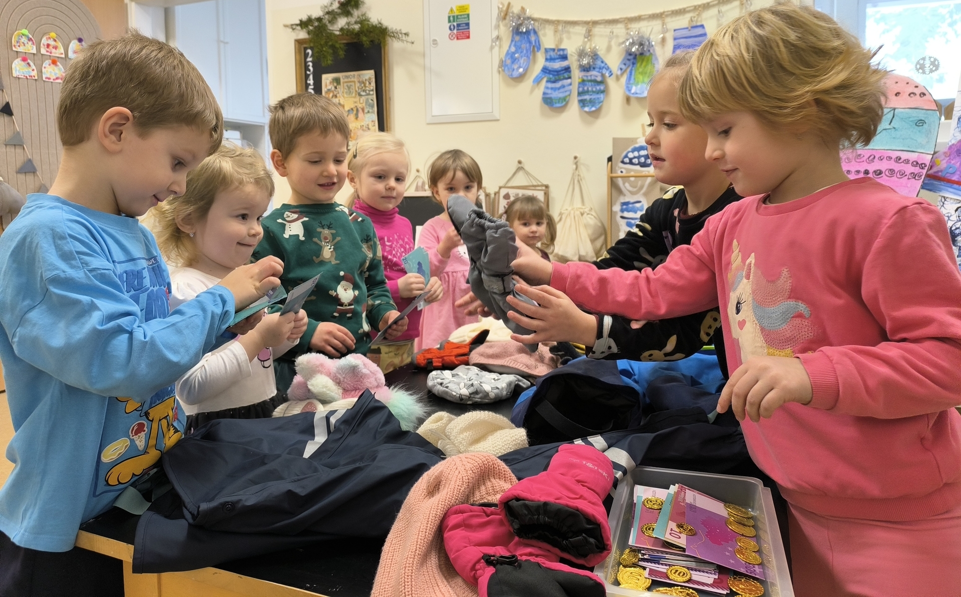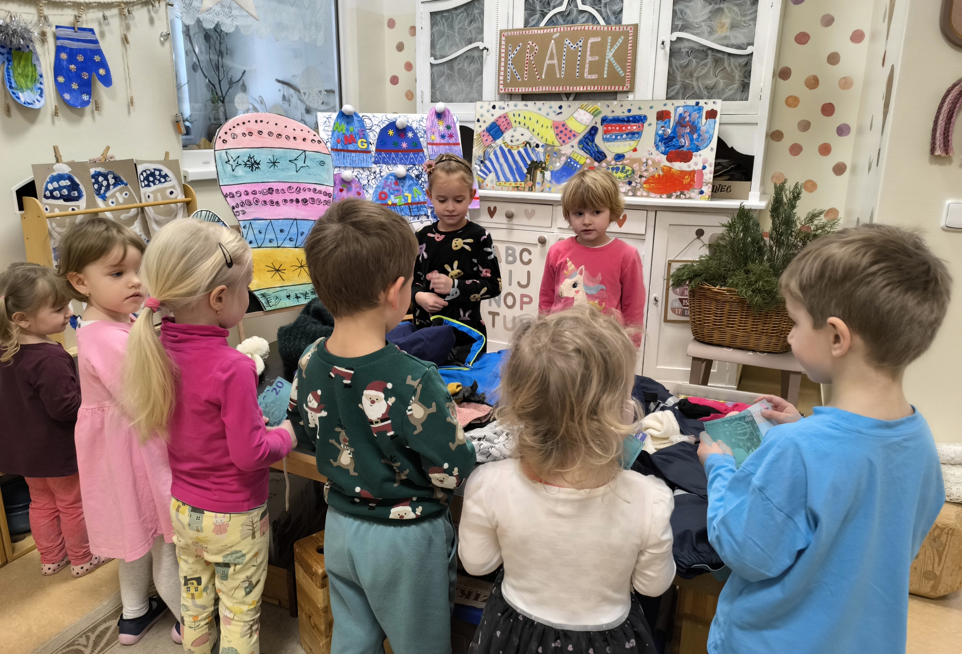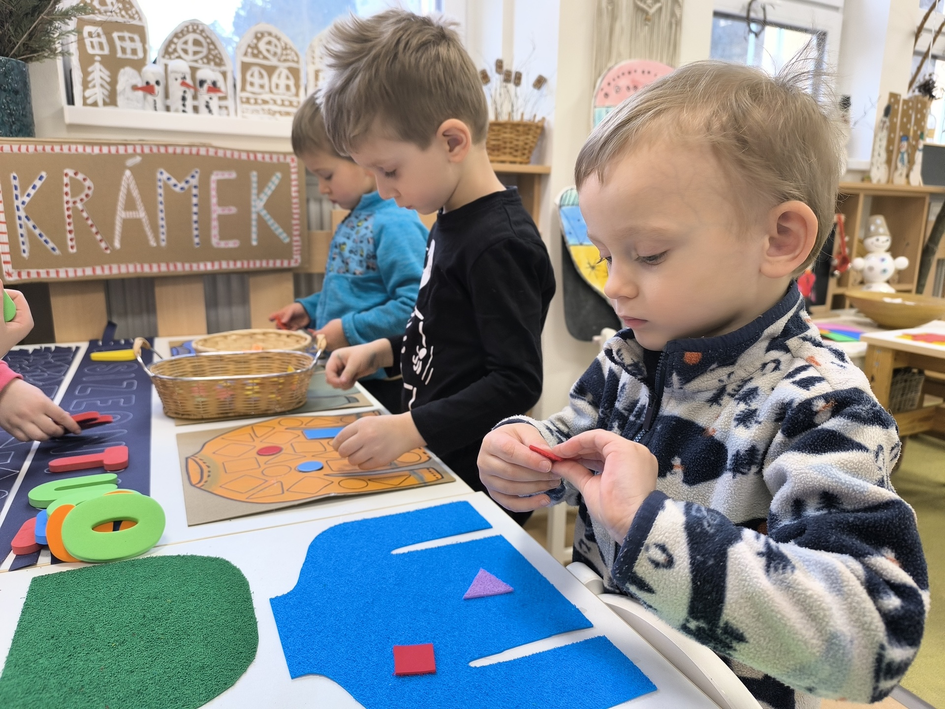 Seznamujeme se se zimním oblečením. Povídáme si o tom, co nás zahřeje, zkoušíme si čepice, šály i rukavice.