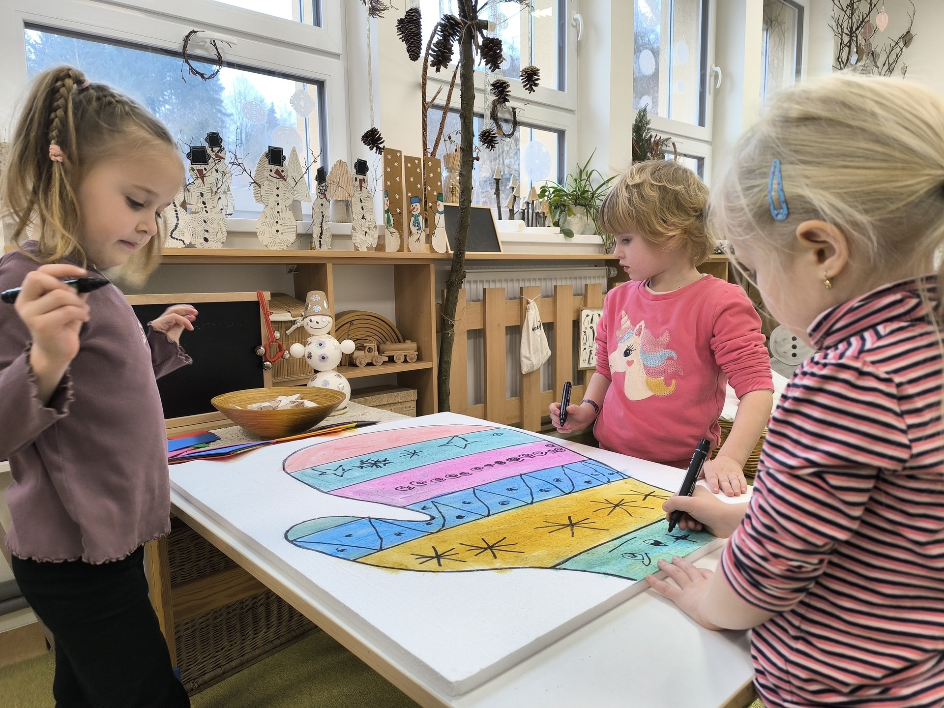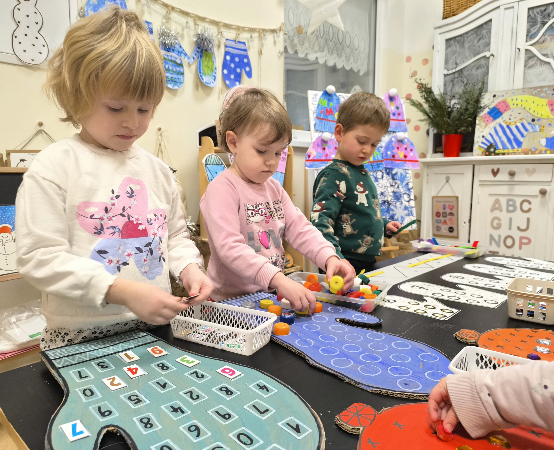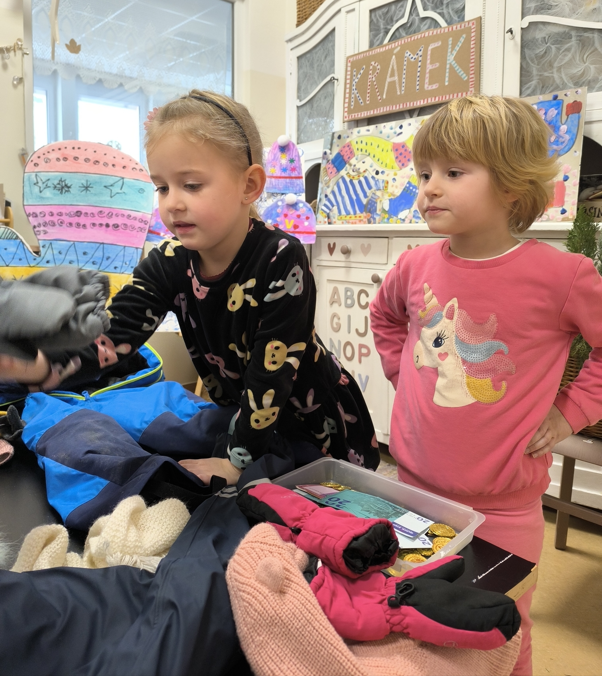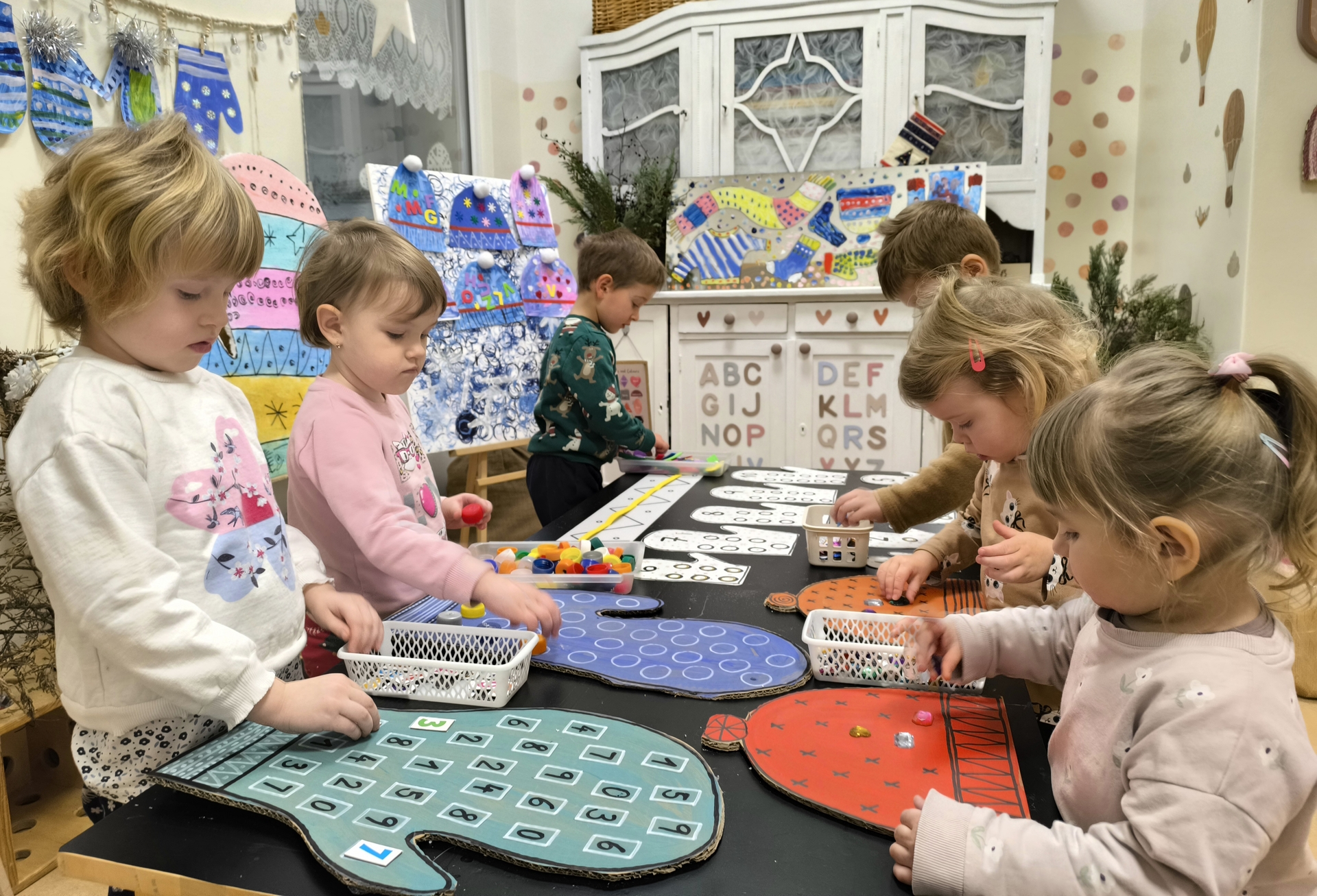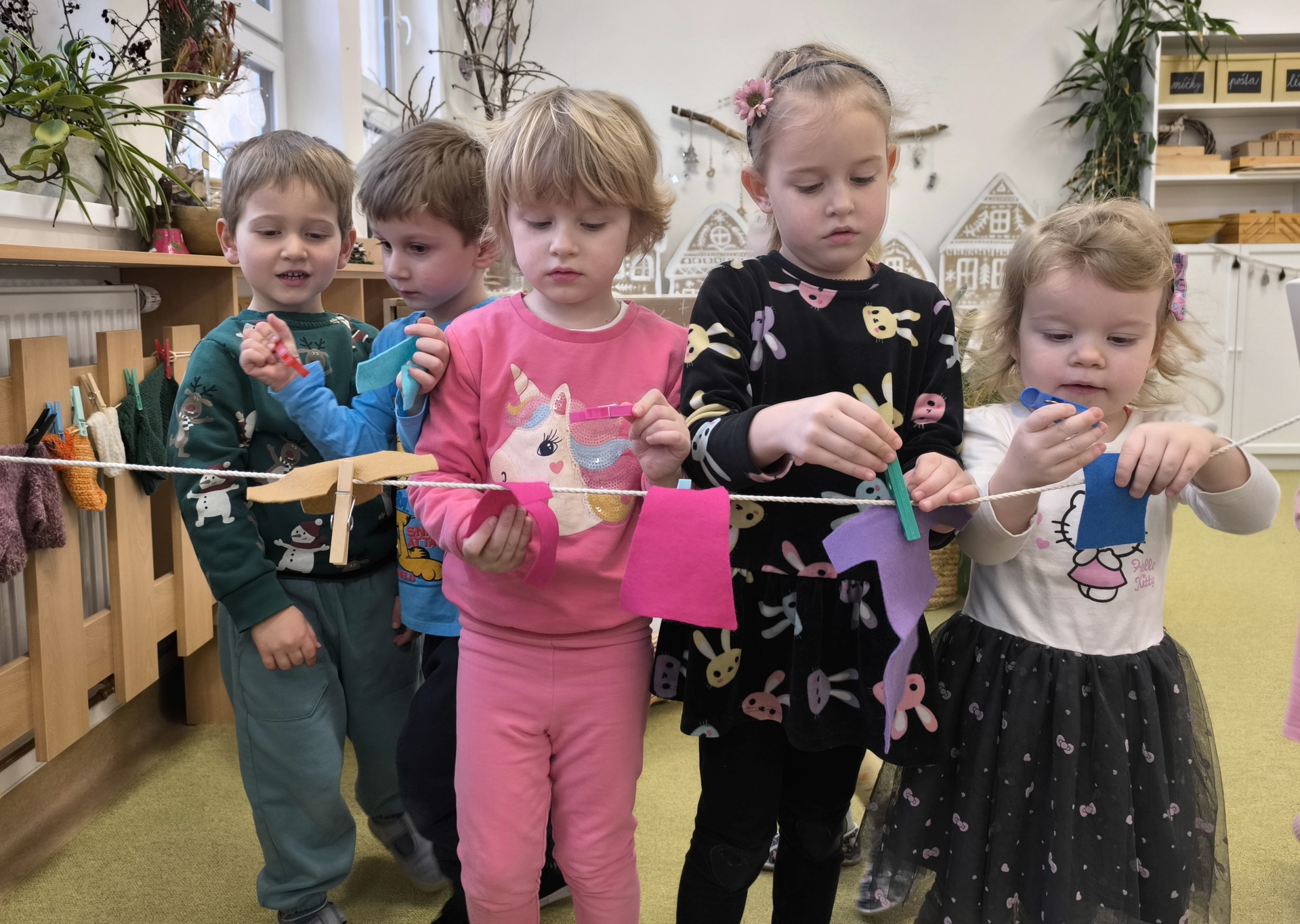 Seznamujeme se se zimním oblečením. Povídáme si o tom, co nás zahřeje, zkoušíme si čepice, šály i rukavice.