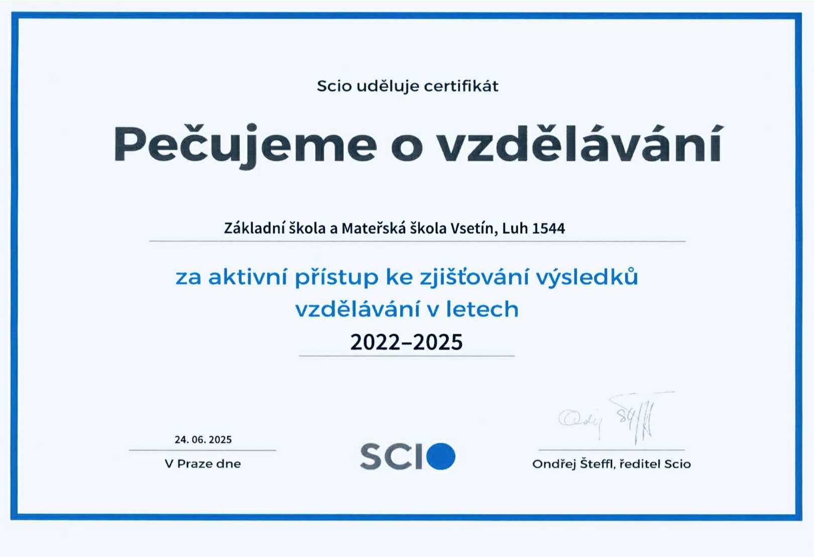 Získáváme OCENĚNÍ SCIO