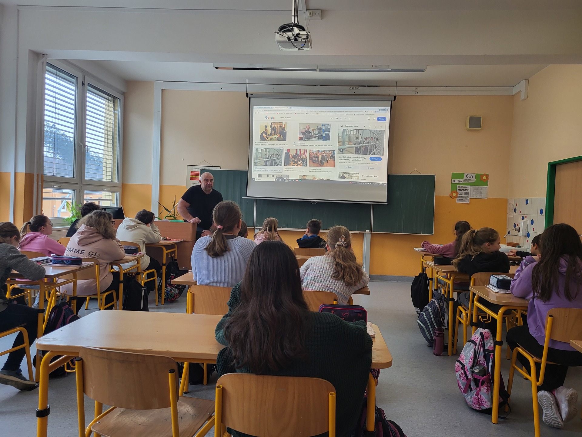 Žáci 6.A měli unikátní možnost vyslechnout bývalého vězeňského vychovatele Mgr. Libora Punčocháře, který dětem přiblížil život ve věznici. Popsal typy věznic v českém systému, denní náplň odsouzených a personální obsazení. Žáci měli možnost klást otázky, a lépe tak pochopit život výkonu trestu v odnětí svobody. Mgr. Zuzana Šerá, třídní učitelka 6.A