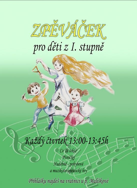 Nový kroužek "Zpěváček" pro žáky 1. stupně pod vedením paní učitelky Jany Olšákové.